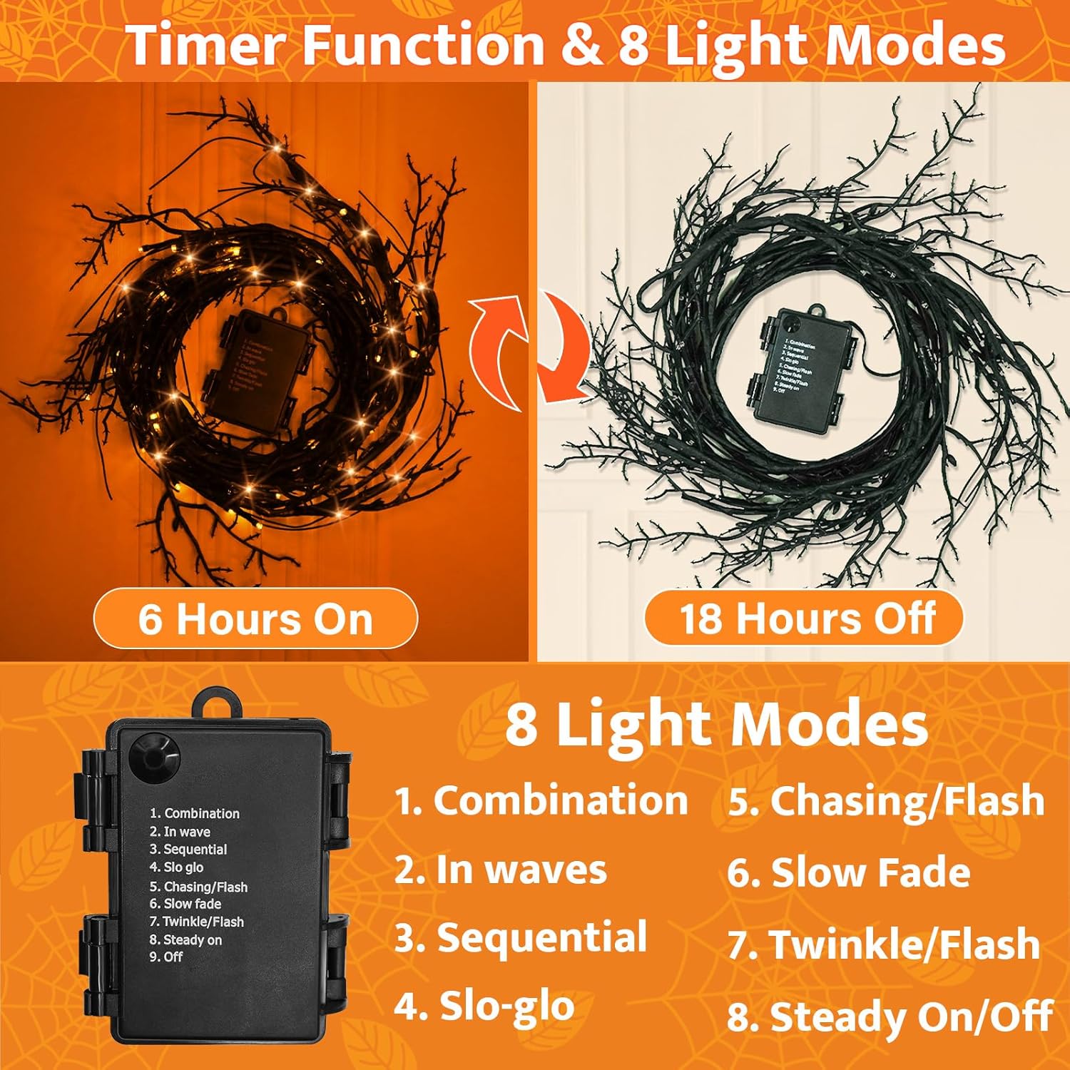 - 🎃【WIDELY APPLICATION】This Willow Vine Twig Lights can be used in a variety of settings, including home, indoor and outdoor, mantles, walls, corners, fireplaces, table centerpieces, kitchens, mirrors, windows, living rooms, bedrooms, and other occasions. They are the ideal choice for adding a touch of Halloween magic to any corner of your home
