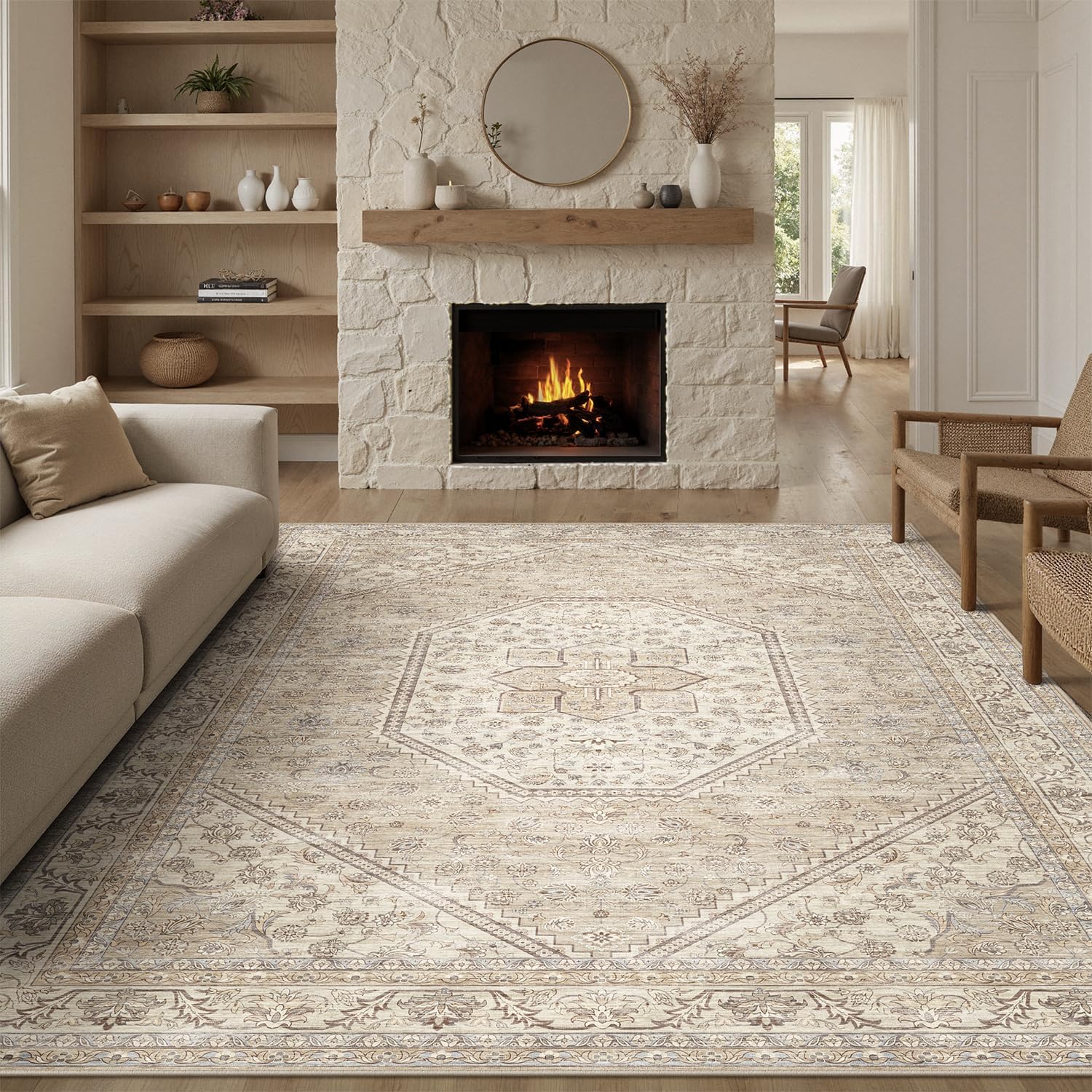 - 【Effortless Machine Washable Area Rug】Keep your 8x10 brown and beige washable rug fresh with zero hassle! perfect as a soft low pile large washable rug for living room, dining room under table rug, or bedroom floor mat, it withstands daily messes. simply vacuum regularly or toss in washing machine—air-dries rapidly while resisting fading. durable for everyday use-machine washable rug 8x10 bedroom