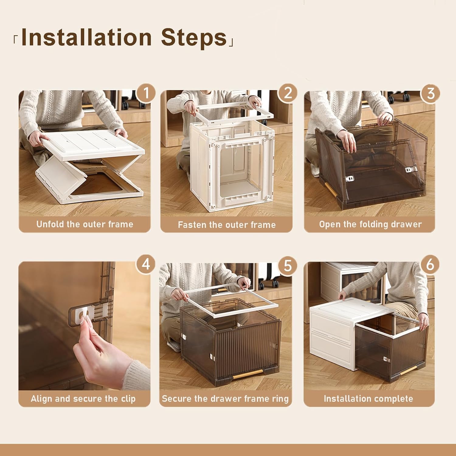 - 𝐃𝐫𝐚𝐰𝐞𝐫-𝐒𝐭𝐲𝐥𝐞 𝐃𝐞𝐬𝐢𝐠𝐧:Unlike traditional door-opening designs, this storage bin innovatively adopts a drawer-style design for effortless access, with integrated sliding rails that protect floors and wardrobes from scratches.