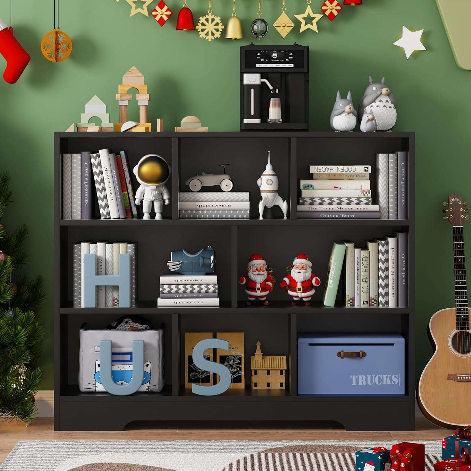 - ăLarge Capacity BookcaseăThis bookshelf features 8 large storage cubes to display and store your books, plants, photos and collections. The Bookcase can be used not only as a bookshelf, but also as a display cabinet, file cabinet and general storage cabinet that can be placed in bedrooms, living rooms and offices.