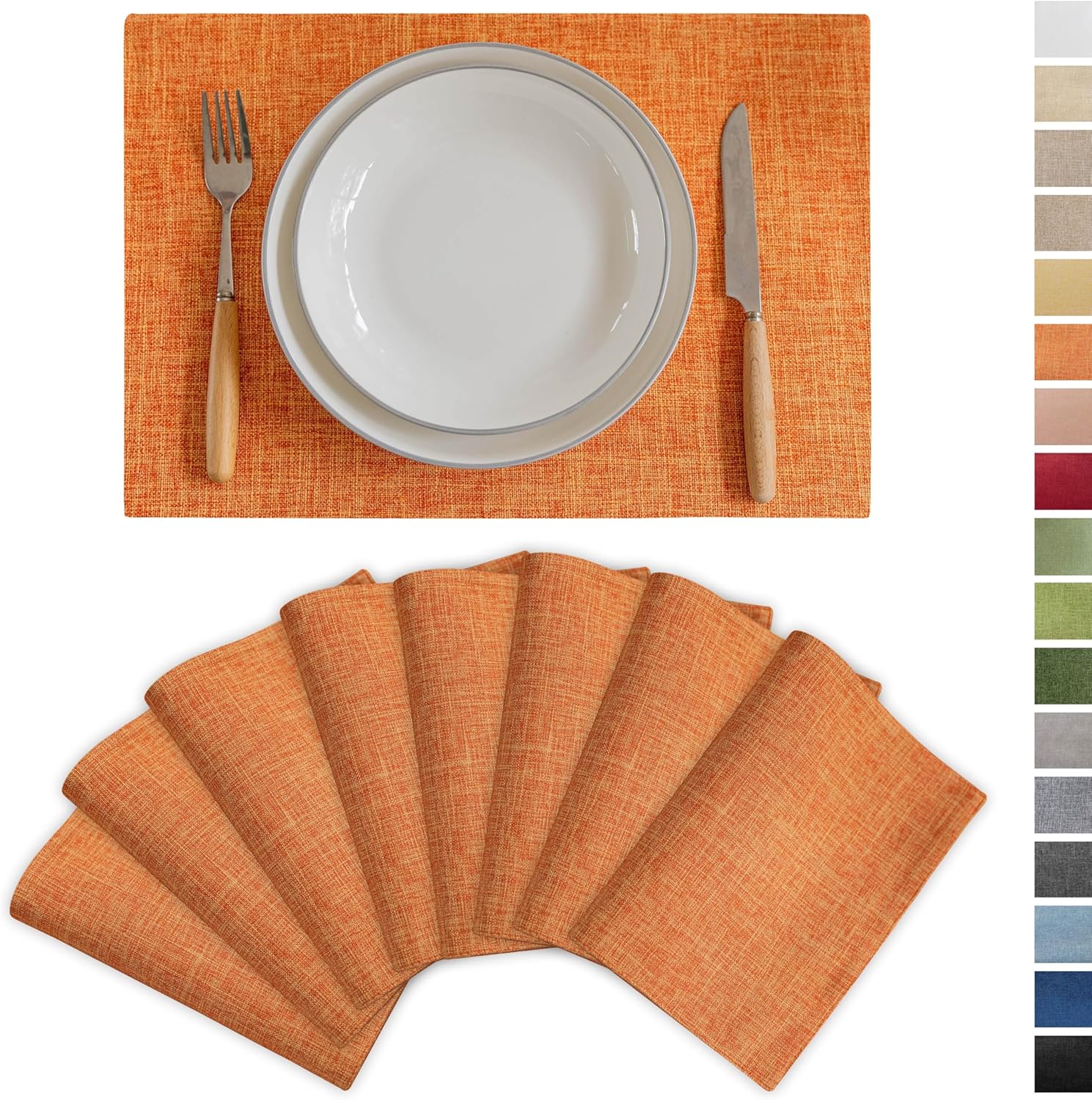 Demetex Orange Fall Placemats Set of 8 Linen Textured Fabric Place Mats Rectangle Cloth Table Mats for Thanksgiving Home Office Table Decor, 13x19 inch, Orange