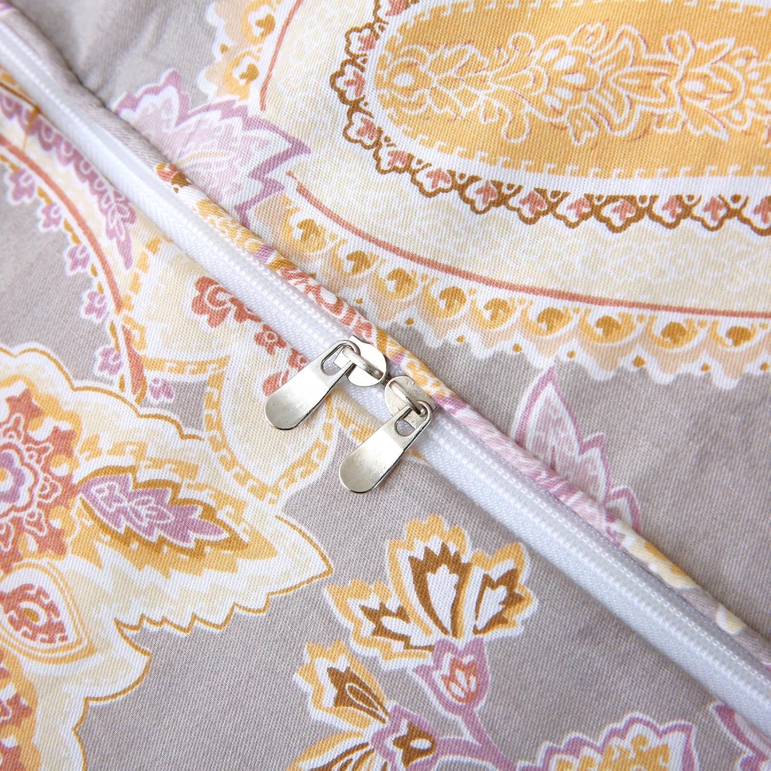 ABREEZE Paisley Bedding Sets 3Pcs Brushed Cotton Duvet Cover Set King Size Rustic Damask Gold Floral Comforter Cover with Zipper Closure Boho Bedding Collections