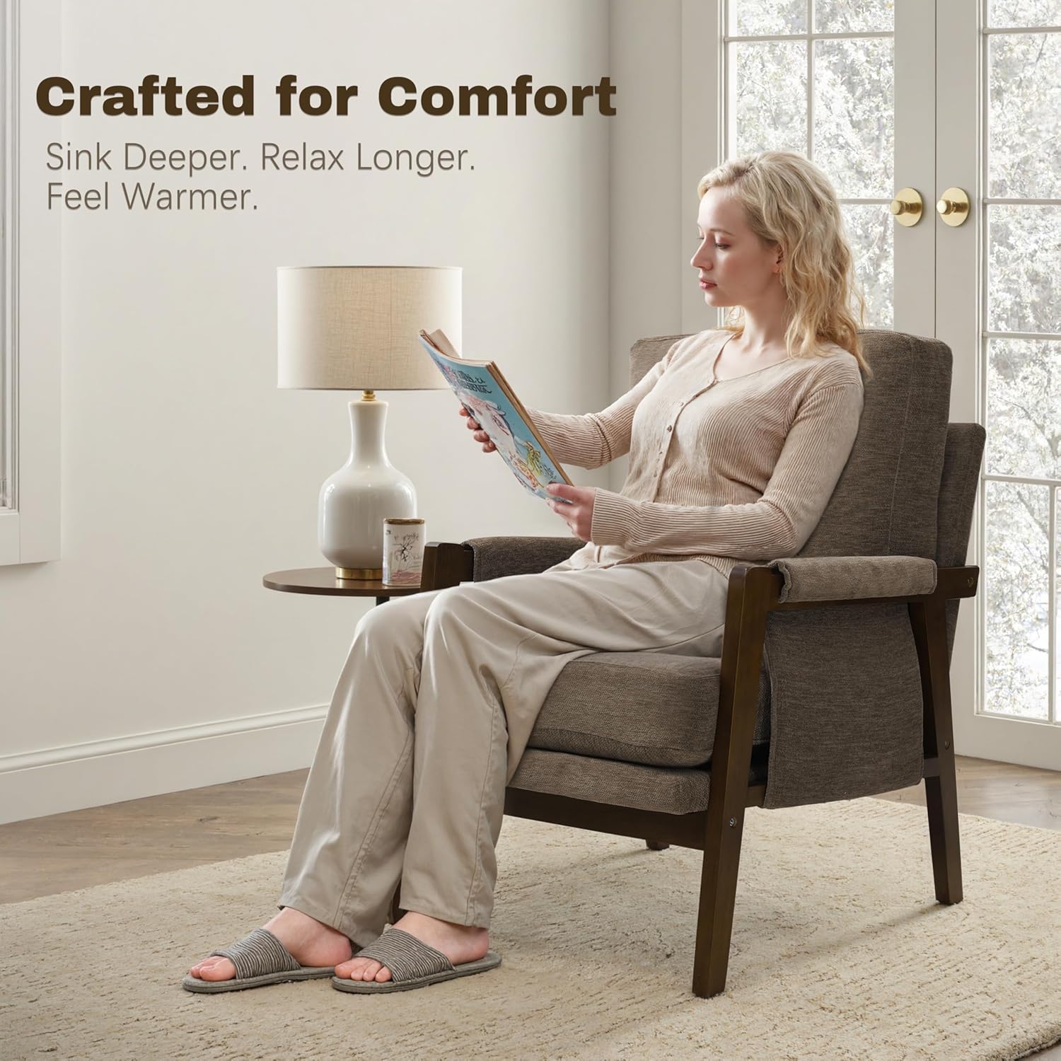 Modern Accent Chair for Living Room Mid Century Arm Chair Upholstered Bedroom Chair Comfy Lounge Chair with Solid Wood Frame, Dark Brown