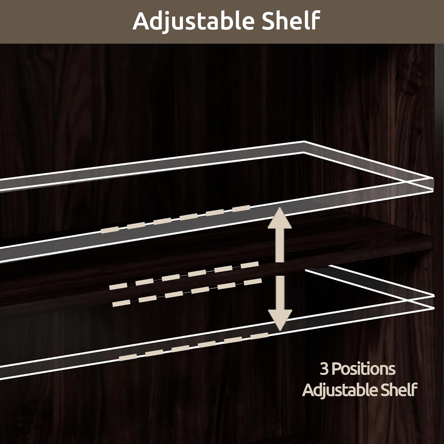 - Versatile Home Designâ: This attractive and practical bookcase with doors features three open upper shelves with two adjustable boards, making it easy to display decorative items, books, figurines, etc., keeping your favorite things in plain sight. The bottom cabinet with double doors includes one adjustable shelf, allowing you to divide the storage space as needed, hide infrequently used items, prevent dust, and keep your home tidy.â