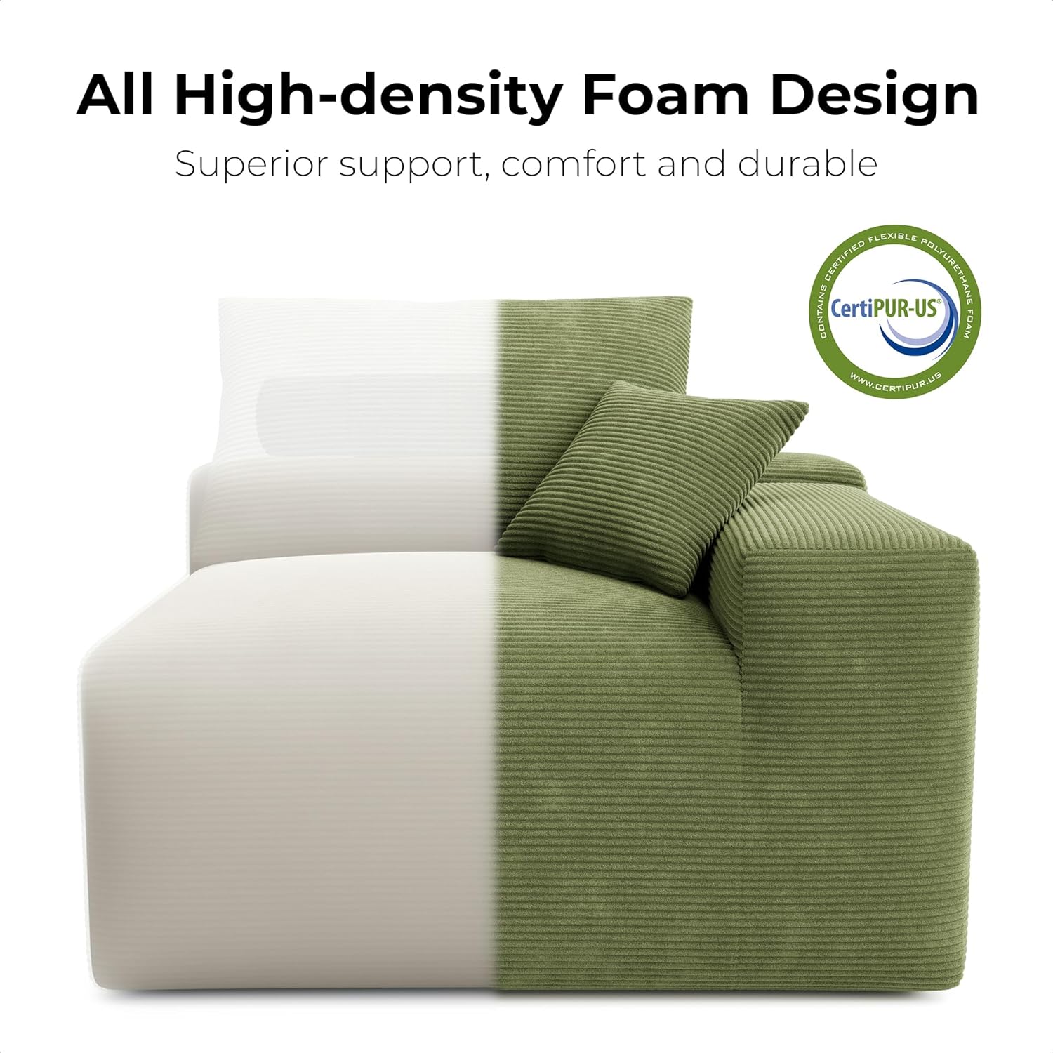 - High-Density Foam Structure for Superior Comfort: Crafted entirely with high-density foam and no internal wooden frames, this modern boneless sofa ensures exceptional support and lasting durability. The foam features fast rebound technology, retaining its shape while providing plush yet firm seating—ideal for daily use. Say goodbye to squeaky frames and hello to pure comfort