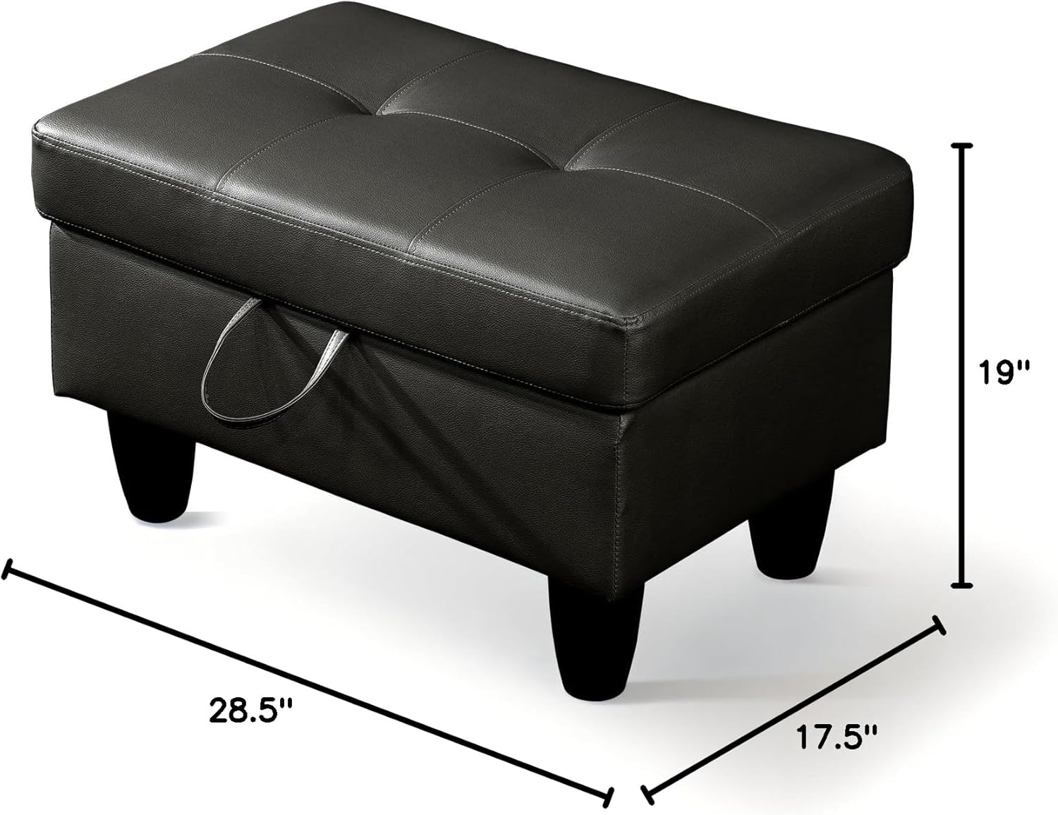 Ottoman Rectangular Storage Ottoman Bench, Faux Leather Footrest, Coffee Table, Stool Footstool with Hinged Lid for Living Room, Bedroom, Entryway, Black, 28.5"x19"x17.5"