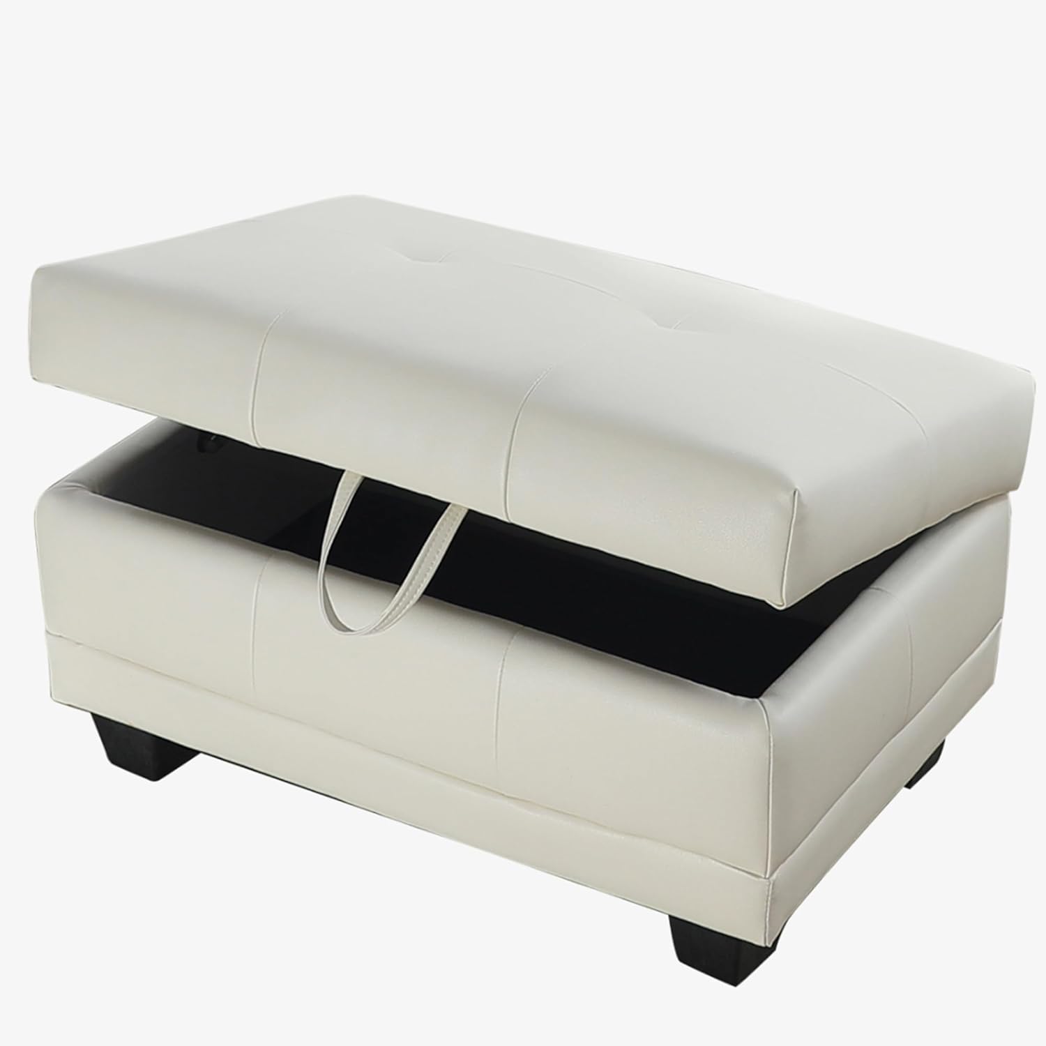 Ottoman Rectangular Storage Ottoman Bench, Faux Leather Footrest, Coffee Table, Stool Footstool with Hinged Lid for Living Room, Bedroom, Entryway, White, 33"x21"x17.5"