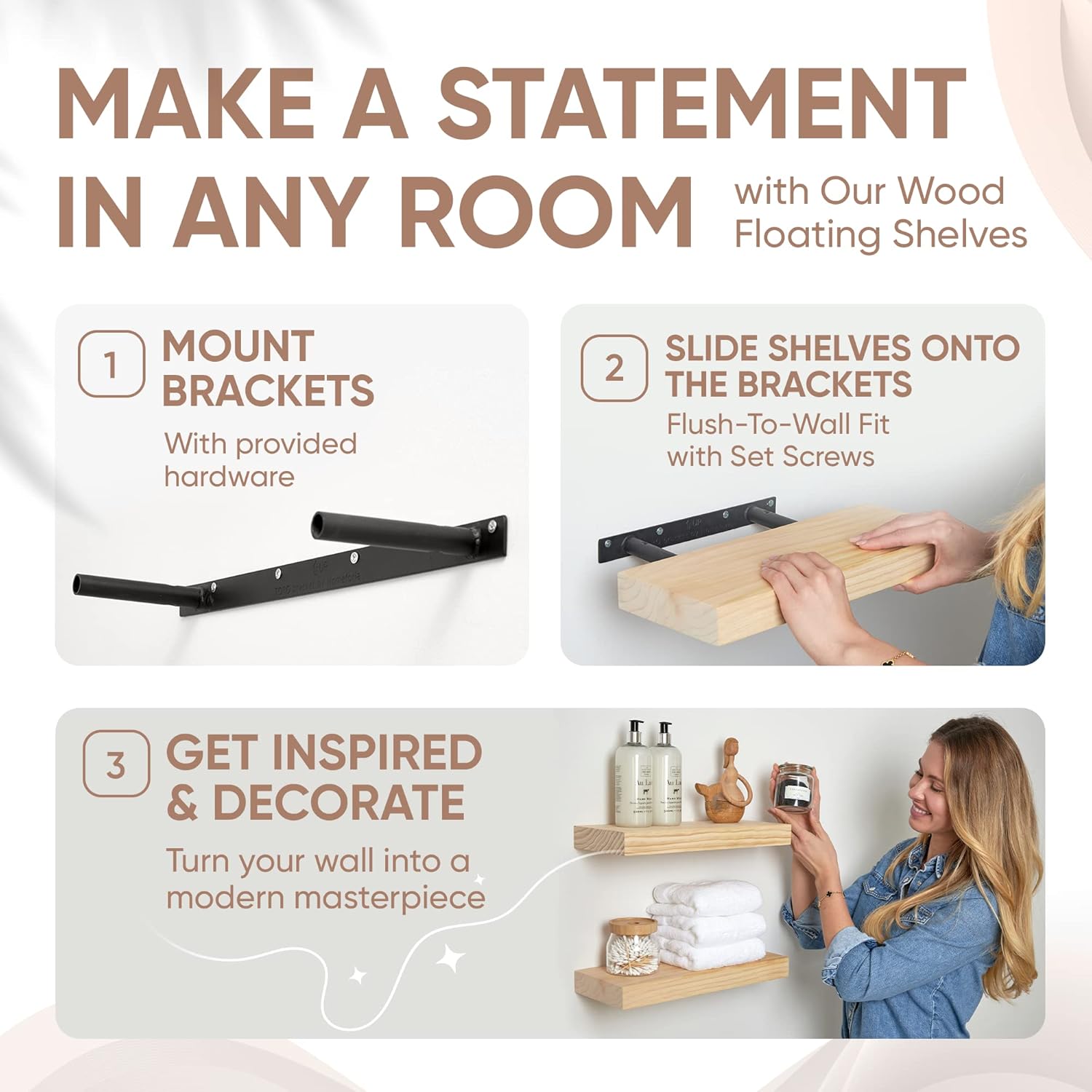 - NO HASSLE, ALL STYLE - Install our shelves in a snap with our easy-to-follow instructions. Spend less time setting up and more time admiring your fabulous new decor.