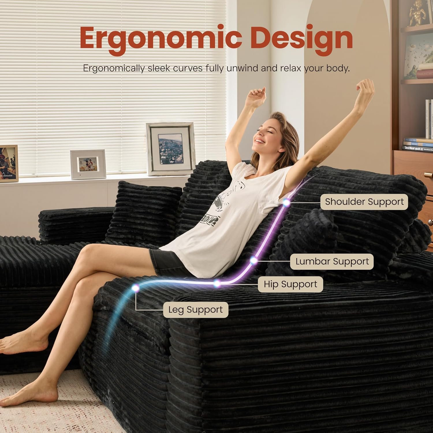 ovios 105” Modular Sectional Sofa with Thicken Seat Cushion, Cloud Couch with Deep Seat, Modern L-Shape Sofas Couches with Chaise,Upholstered Couches for Living Room Bedroom,Black
