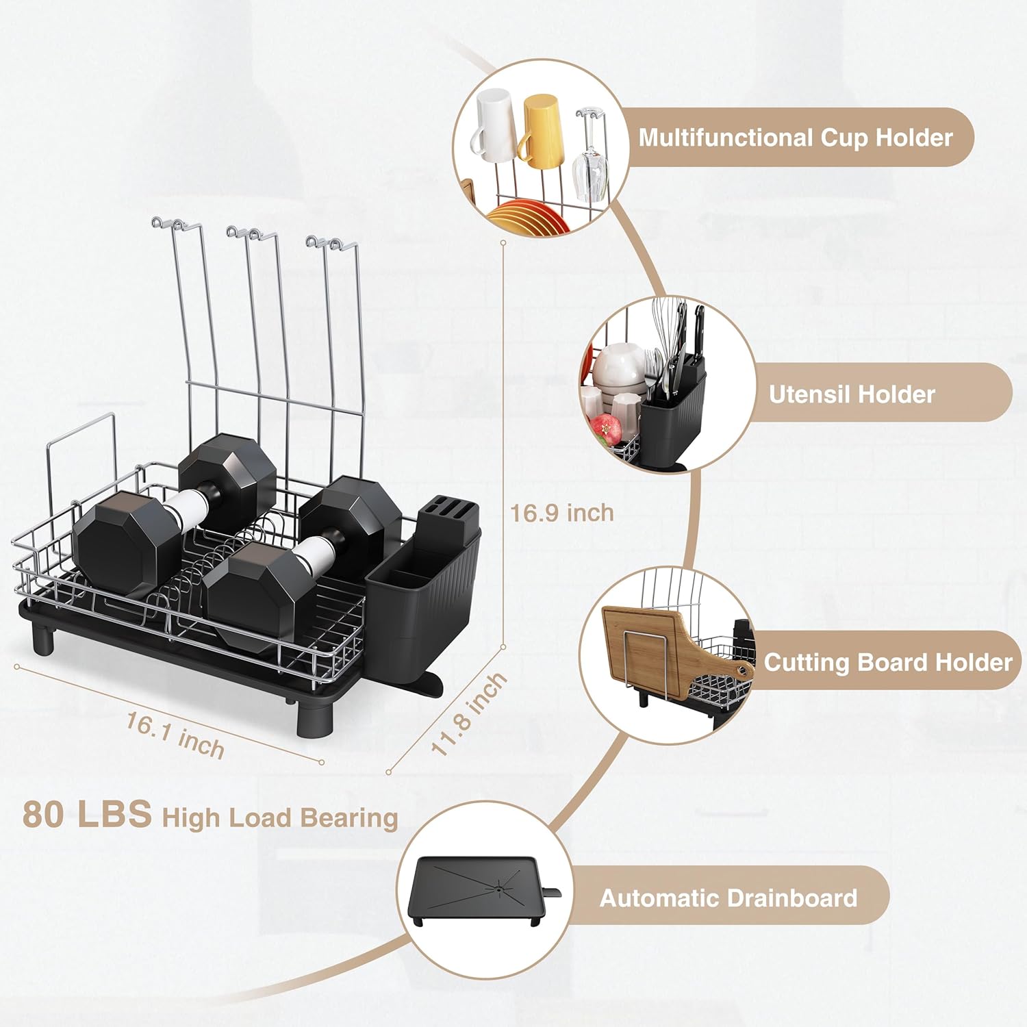- 💼Space-Smart Versatility: Durable and stylish metal drying rack,With a durable design and space for plates, bowls, cuttng board, glasses and cutlery, the Dish Drainer is a solid drying rack choice for every household.