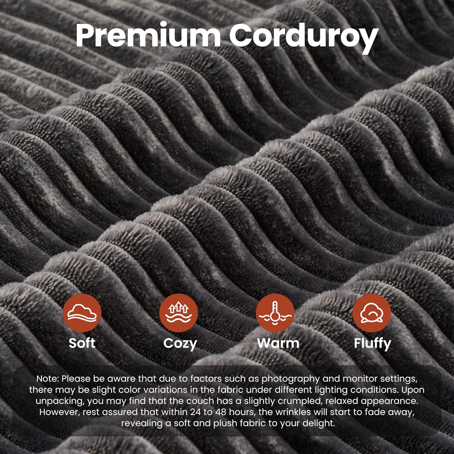 - Corduroy Fabric:Experience the lavish comfort of our enhanced corduroy fabric, offering unmatched softness and warmth. Its impressive durability and stain-fighting prowess keep your sofas looking fresh and lively. With a variety of color choices, our corduroy chaise sofa lets you showcase your unique style while adding irresistible charm to your space