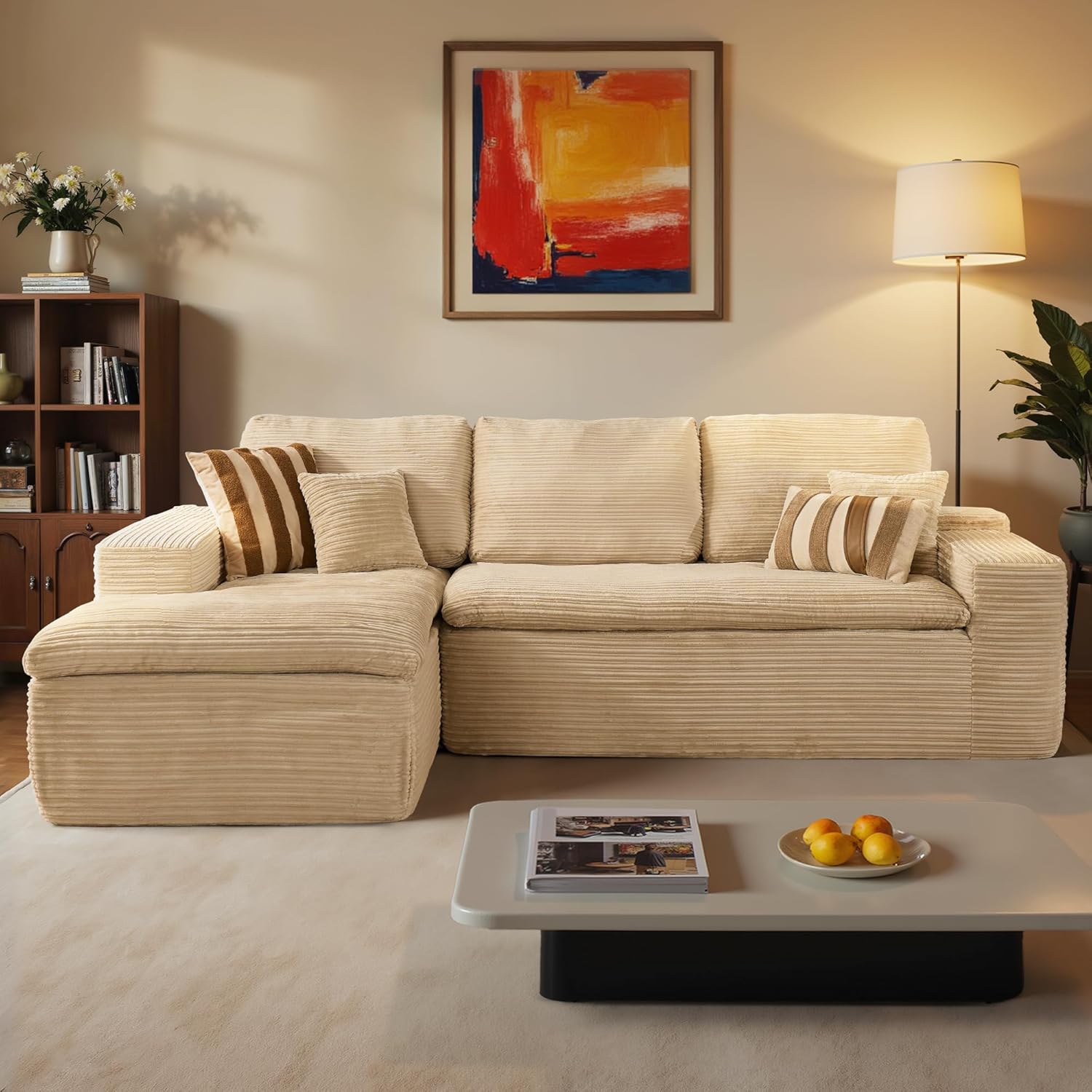 - Corduroy Fabric:Experience the lavish comfort of our enhanced corduroy fabric, offering unmatched softness and warmth. Its impressive durability and stain-fighting prowess keep your sofas looking fresh and lively. With a variety of color choices, our corduroy chaise sofa lets you showcase your unique style while adding irresistible charm to your space