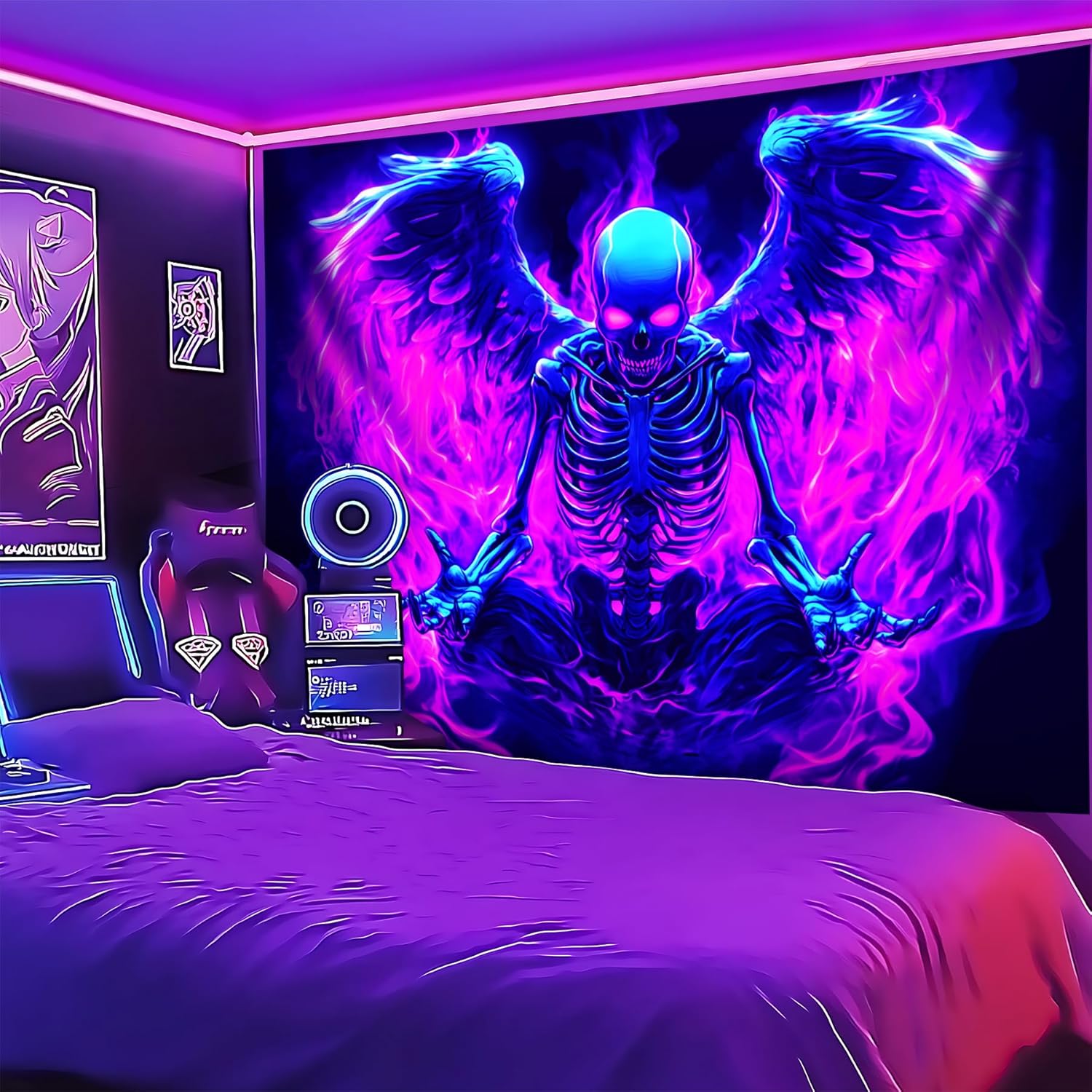Blacklight Tapestry,WingTapestry Glow In The Dark,UV Reactive Black Light Upright Posters Wall Hanging for Bedroom Dorm Living Room Backdrop Decor (wing14, 90L" x 70W")