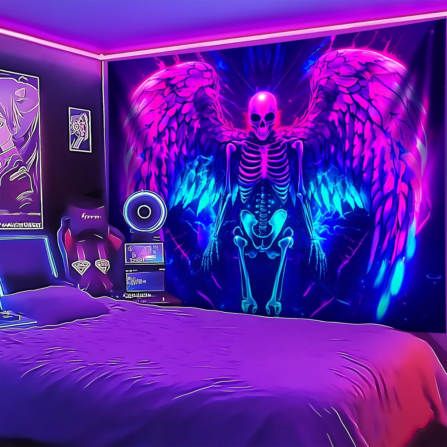 Blacklight Tapestry,WingTapestry Glow In The Dark,UV Reactive Black Light Upright Posters Wall Hanging for Bedroom Dorm Living Room Backdrop Decor (wing13, 90L" x 70W")
