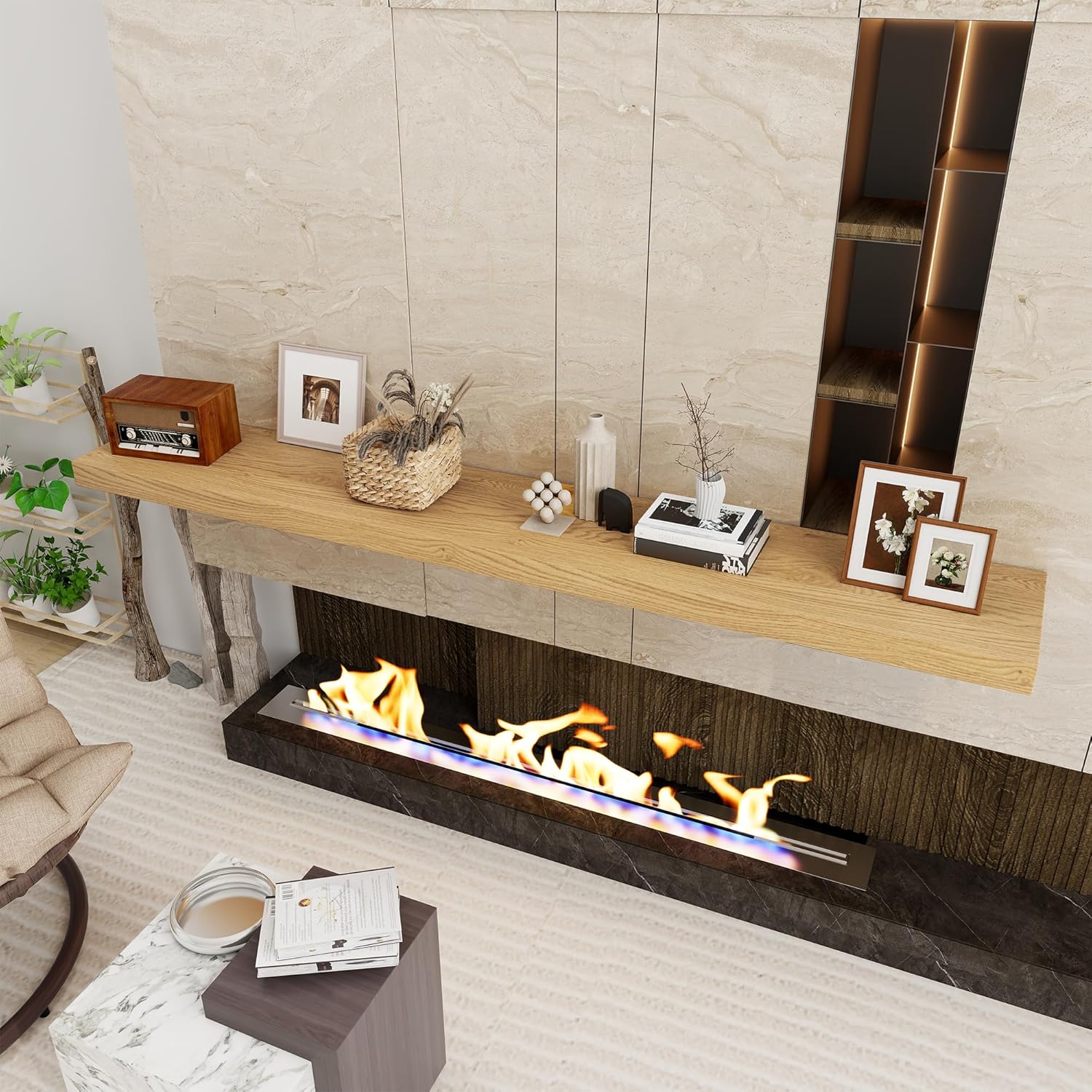 Fun Memories 72 Inch Floating Shelf, 12 Inch Deep Wall Shelf for Fireplace Mantel, Deep Storage Shelves for Home & Office, Wall Shelves with Invisible Bracket, Oak, Set of 1