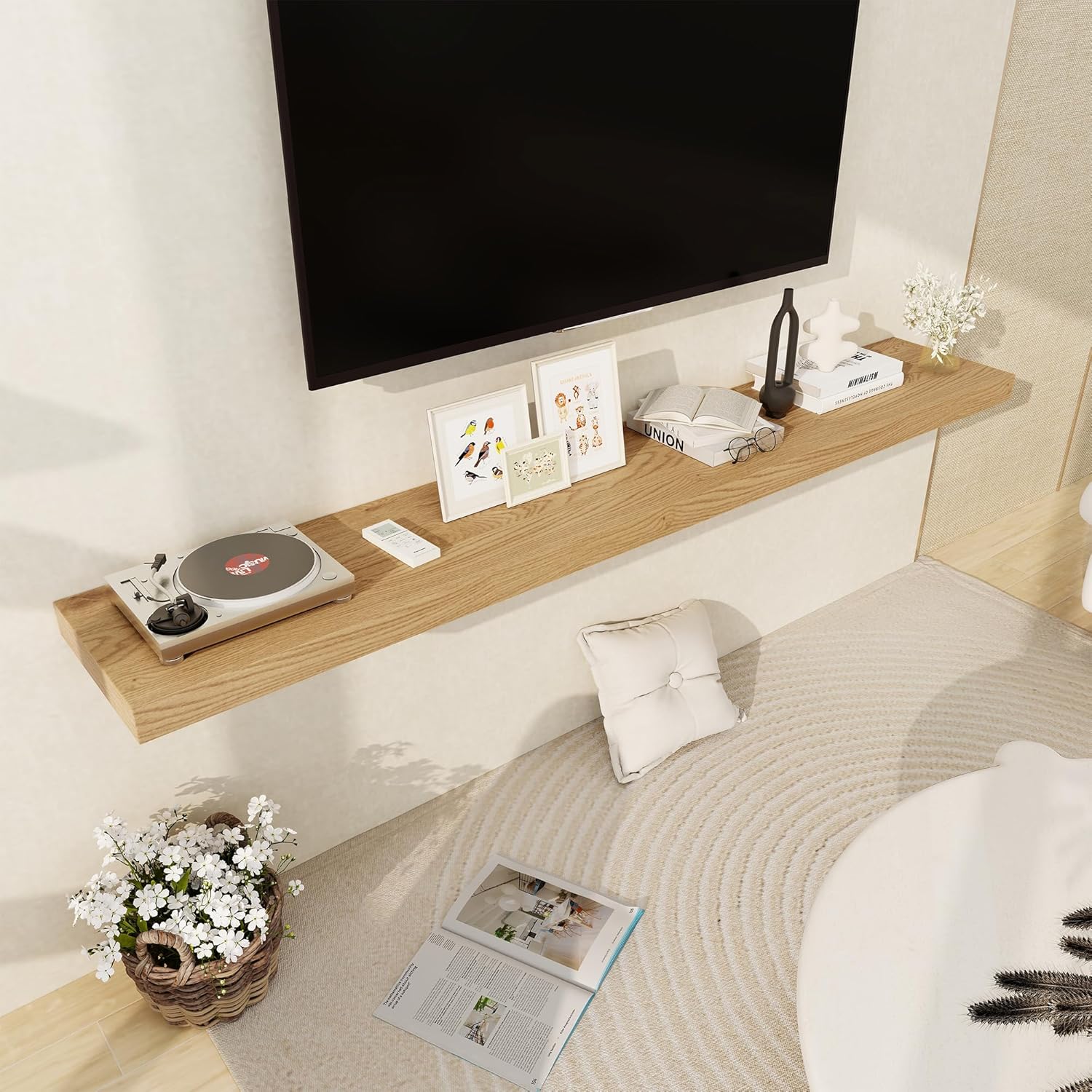 - ăDECORATIVE & FUNCTIONALăThe wall-mounted floating shelves are designed for decoration and storage, utilizing and decorating any space in your home. Used as shelf decor to show your collection, books, or prize, the hanging shelves are perfect for displaying your photo frame, small plants, model, or audio in your living room, office, study. And can also use as over the toilet storage shelf in the bathroom to hold toiletries or used as kitchen shelf to storage condiments.
