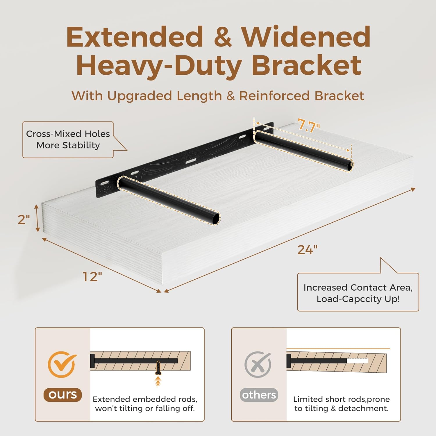 - ăFARMHOUSE RUSTIC WALL SHELFăThese floating shelves are made of premium engineered wood board and invisible one-piece bracket. The rustic wooden grain surface add character and warmth to any modern or traditional interior with these thick floating shelves, contrast shelves at staggering heights on the wall or mount side-by-side or in the corner for a clean streamlined look.