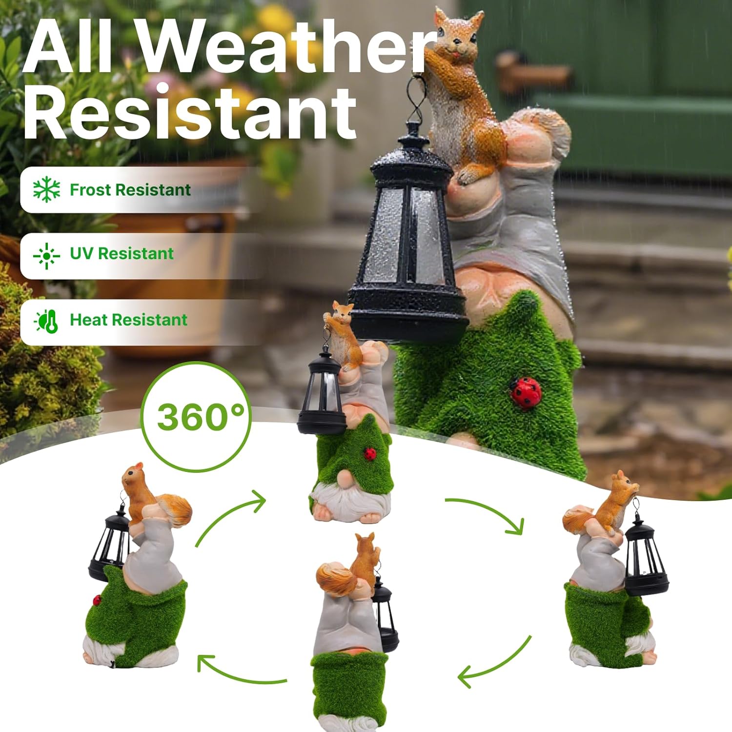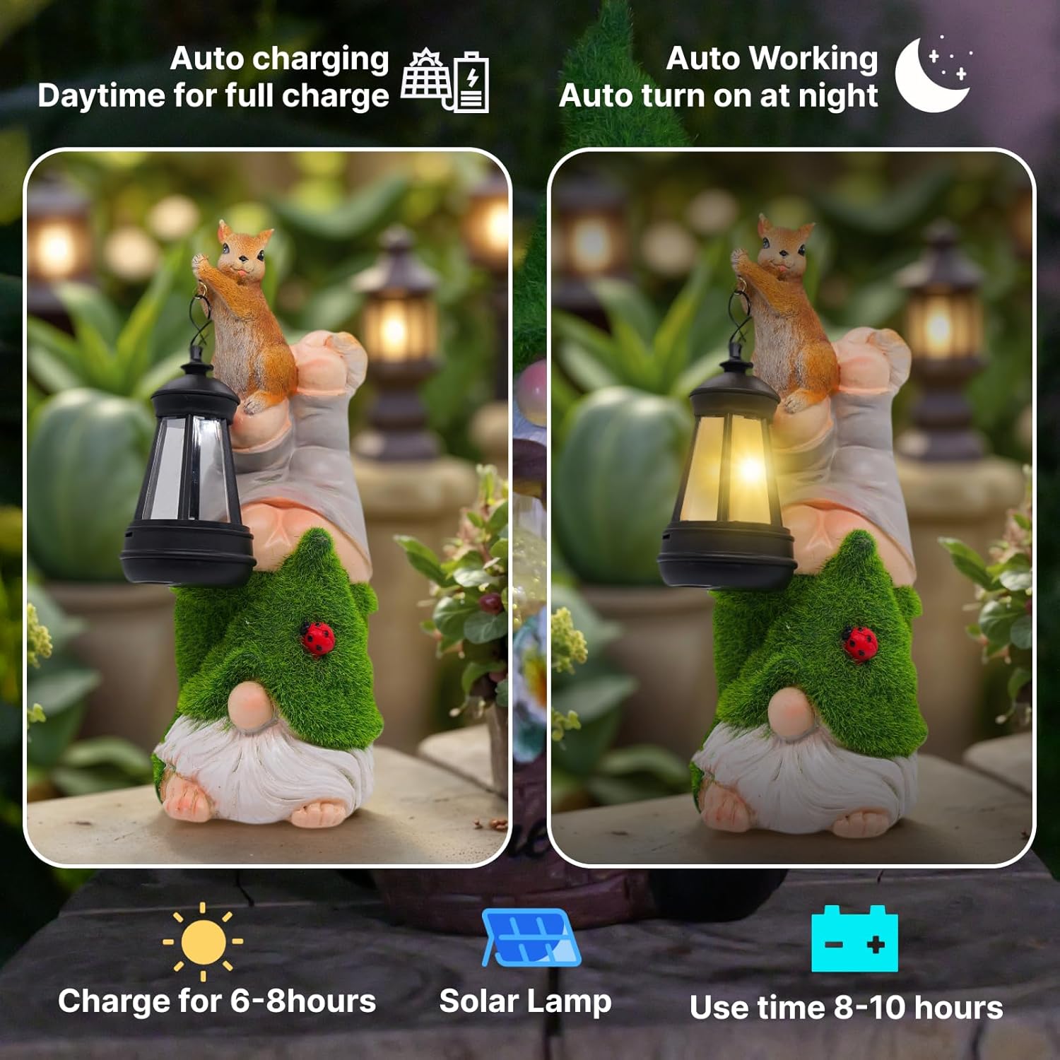 - [ Solar-Powered Garden Gnome Staute ] No wiring, auto-lighting. Charge 6-8hrs in sun, glows 8-10hrs at night