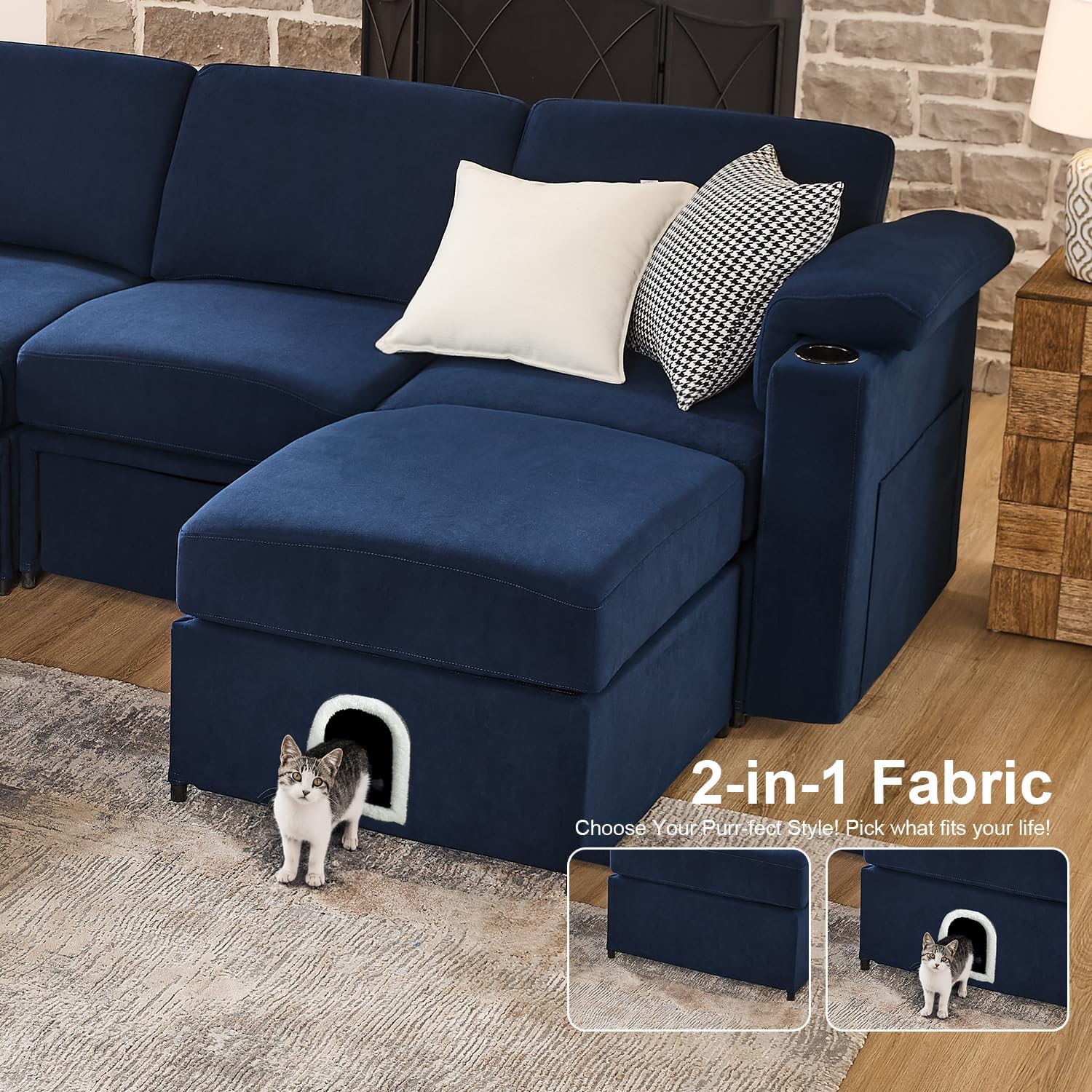 - Thoughtful Details: Our modular sofa each armrest is equipped with cup holder,soft armrest pad,and side pockets, adding more comfort and convenience to your daily life.