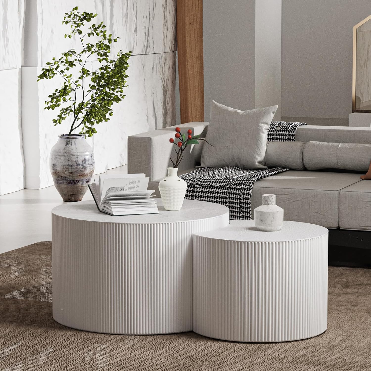 - Unique Design: This nesting coffee table set of 2 features a unique classic round design. The nesting coffee tables for living room create a harmonious and modern aesthetic with the combination of simple elegant lines and smooth curves. Additionally, the nesting tables make your living space more flexible, dynamic, and full of personality and creativity.
