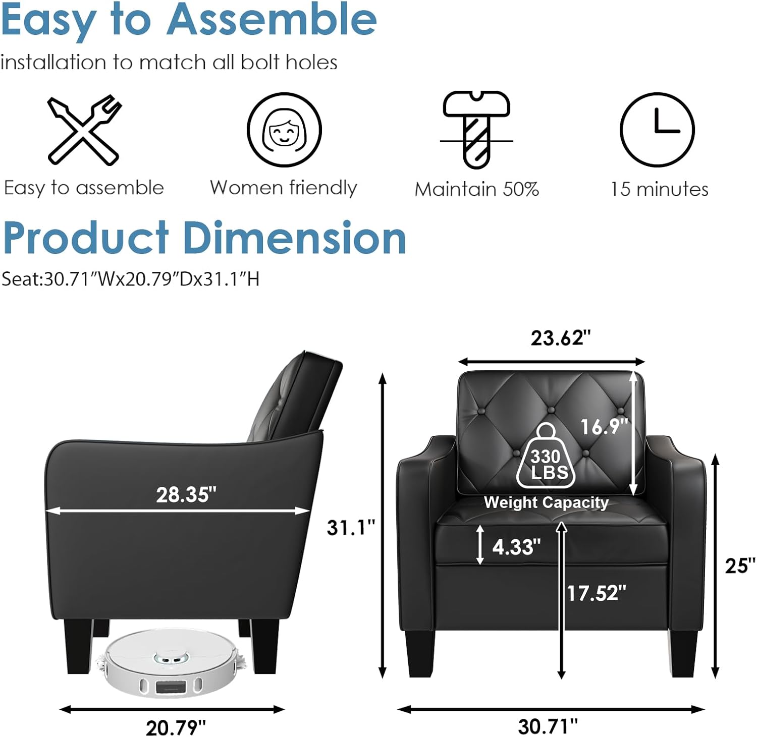 - 【Ergonomic Design】The backrest tilts 105 degrees and the back and seat cushions are filled with high resilience foam and doll cotton for softness and wrapping. The curvature of the armrests is designed to fit your arms well. This living room chairs provides maximum comfort and coziness.
