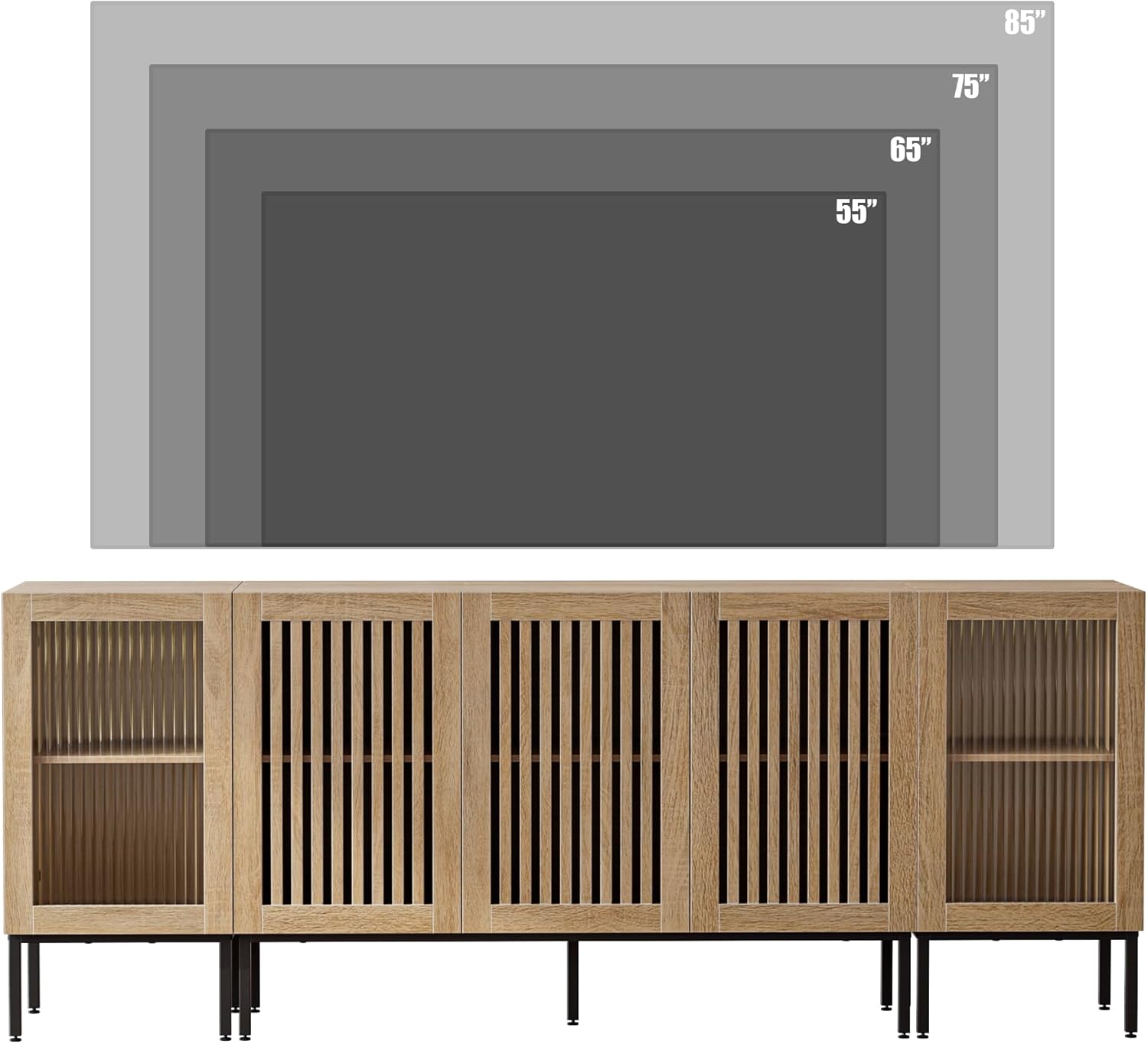 Farmhouse TV Stand for TVs up to 85 Inch, Entertainment Center TV Console with Storage Cabinets and Glass Doors, Media Console for Living Room,Oak