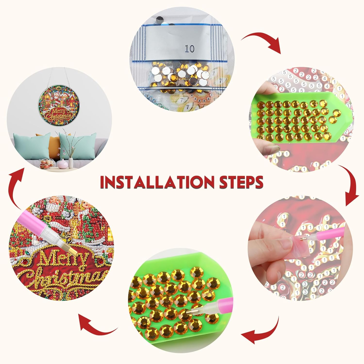 Diamond Art Hanging Kit for Adult, Merry Christmas, DIY Special Shaped Crystal Acrylic Diamond Art Painting Window Pendants, Santa Claus Sign, Diamond Painting Ornament for Home Garden Wall decor