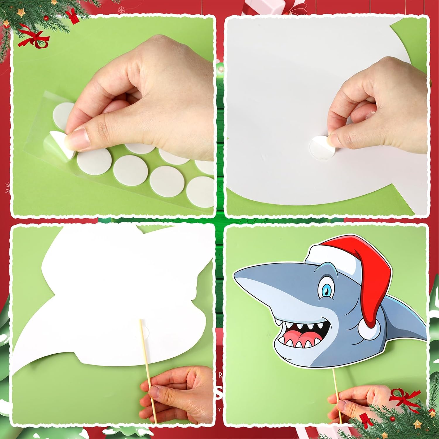 - Package Content: you will receive 1 set of shark Christmas tree decoration, include 1 head, 1 hands, 1 pair of legs and a tail, featuring a shark holding a red candy cane; Which will add fun and cheer to your holiday season; In addition, the package provides 20 glue stickers and 5 sticks, can easily stick them to the Christmas tree, which will add a lot of fun and bring the most joyful Christmas ever