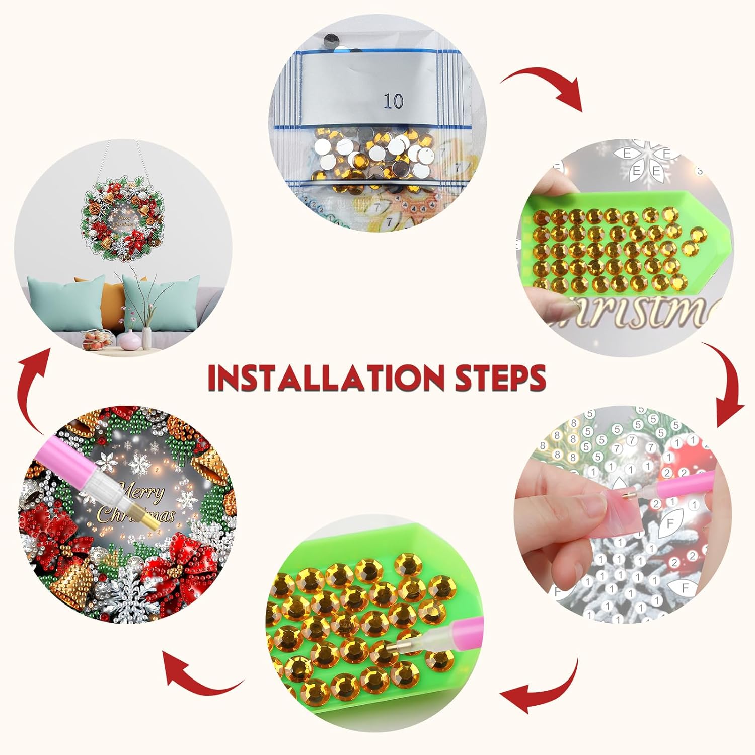 - What You’ll Receive: Includes numbered acrylic hanging plate x1, iron chain x1, diamond pen x1, tray x1, wax pad x1, plenty of diamonds, and a beautiful box—everything you need to start your diamond art project