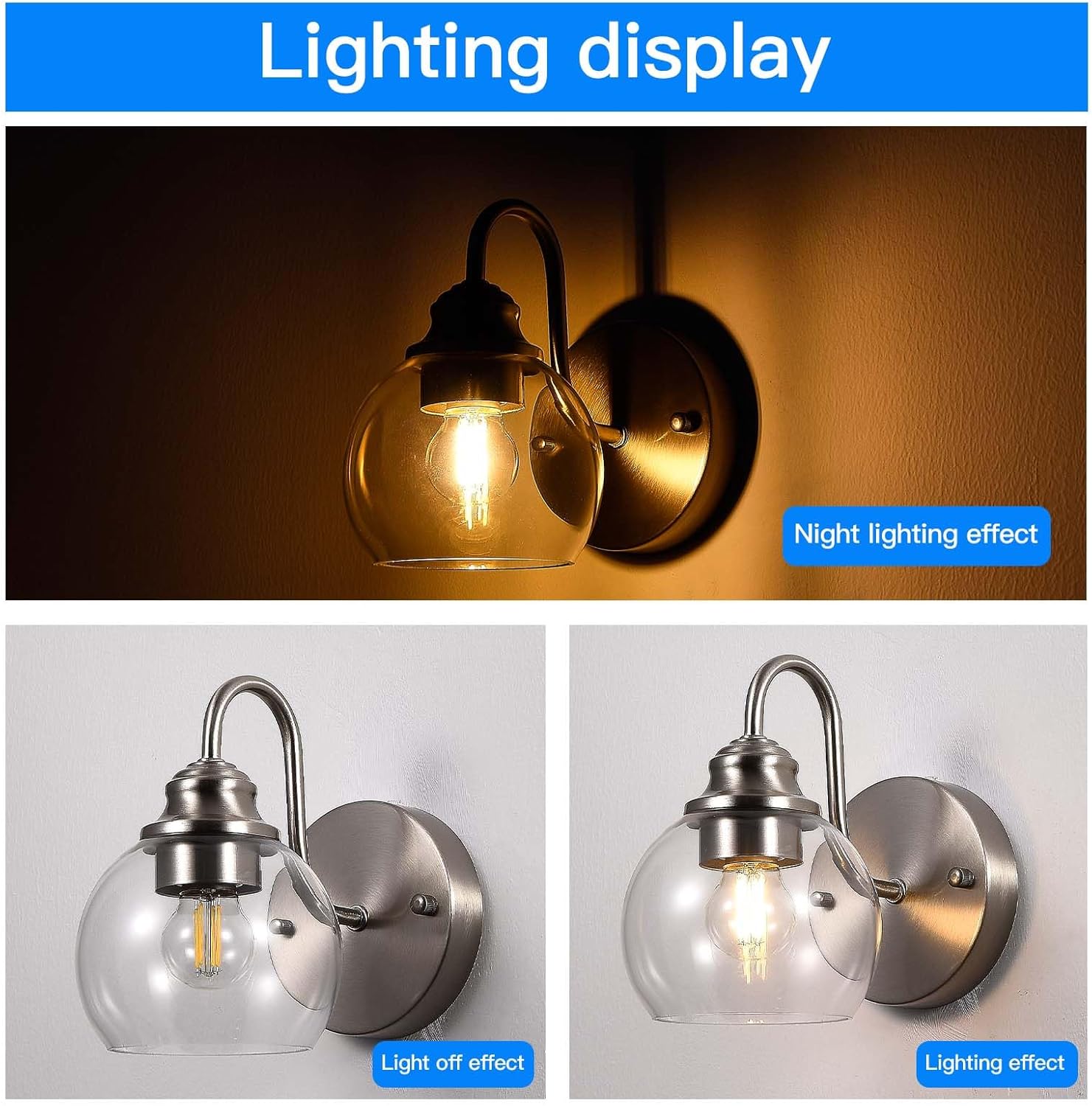 - [Excellent wall lamps]: Two sets of wall lamps are composed of transparent glass lampshades and metal bases. The transparent glass lampshades ensure good light transmittance. The gooseneck design not only restores the classic farmhouse style but also brings a touch of tenderness to your space, making it less rigid. The manufacturing process of brushed nickel metal paint ensures that the wall lamps will not oxidize or fade.