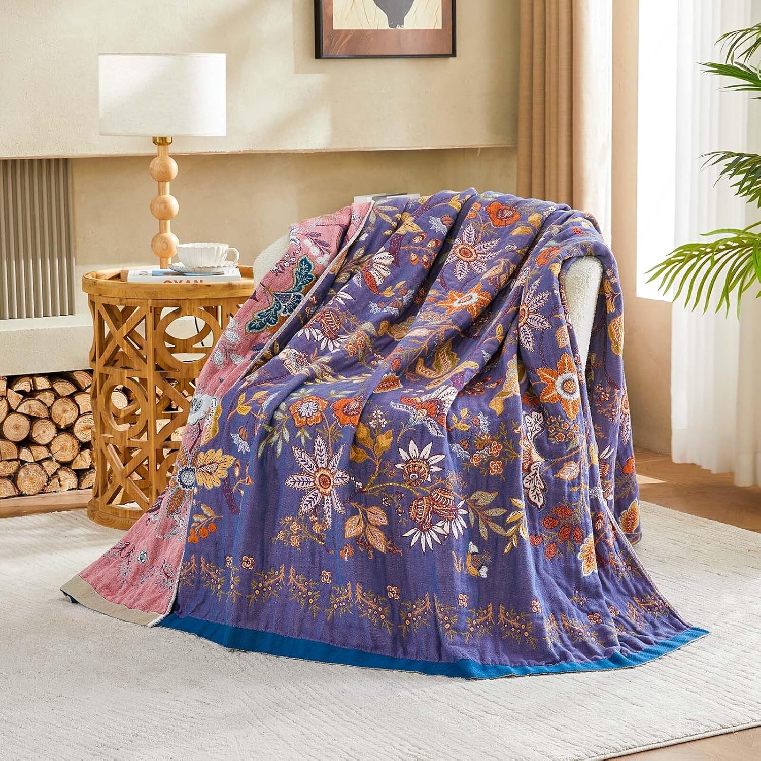 - Unique Farmhouse Style:XIBLC Boho Blanket Throw has a very chic and vintage look. Elevate your space with a chic farmhouse aesthetic. Our bohemian muslin blanket showcases charming animal or floral geometric patterns on the front and back, bringing together classic colors and a variety of elements.