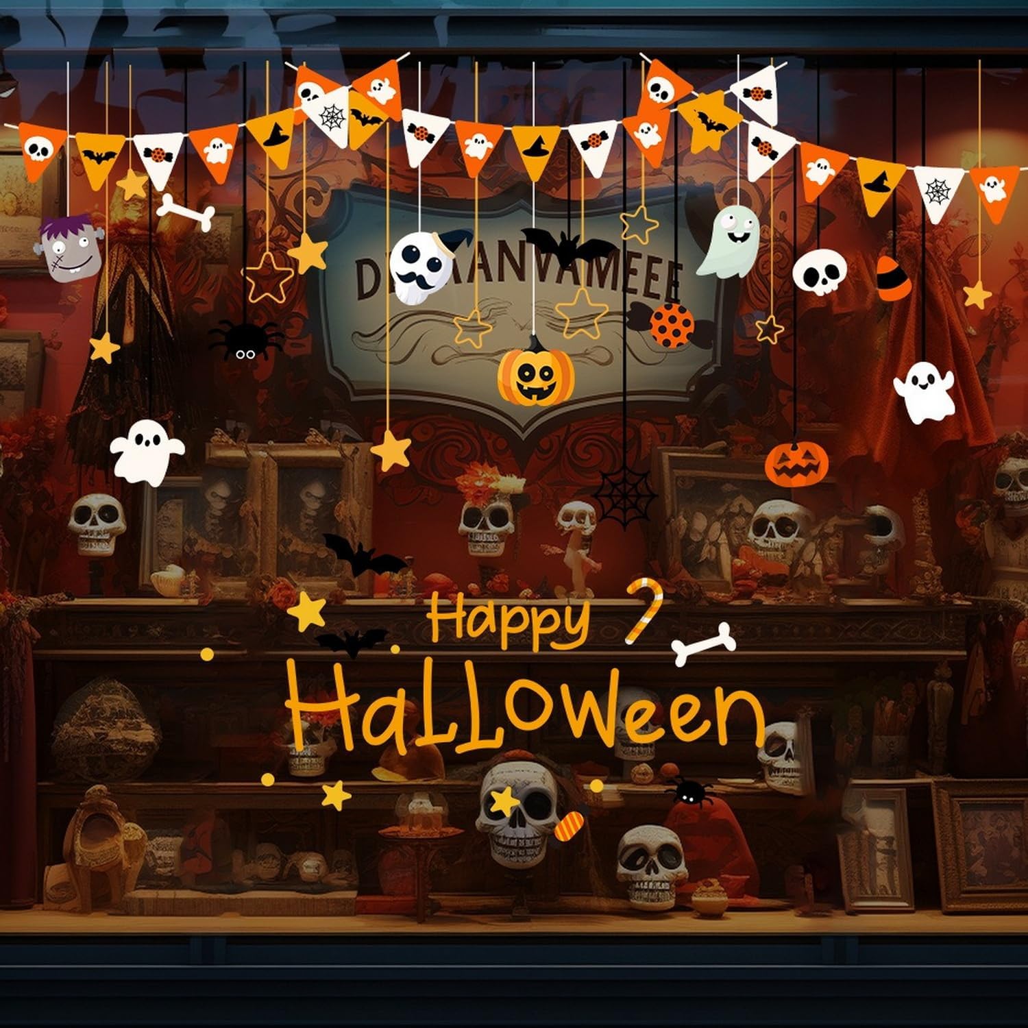 Halloween Window Clings for Glass Fall Static Cling Window Decals 1PCS Cute Ghost Pumpkin Candy Spider Autumn Reusable Window Stickers Home School Office Decorations