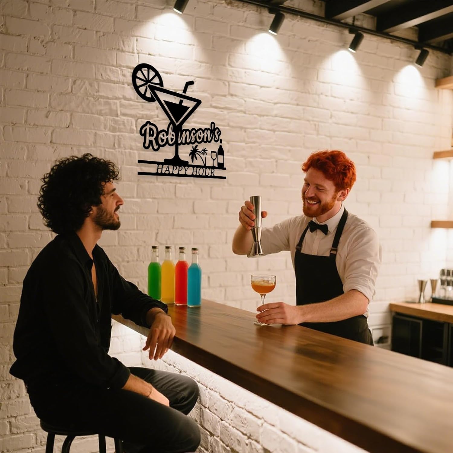 - Customizable Happy Hour Bar Sign: Personalize with names, dates, or witty cocktail quotes (e.g., "It’s 5 O’Clock Somewhere!") on premium metal. Laser-cut designs feature wine glasses, martini motifs, or vintage cocktail shakers—perfect for transforming home bars, kitchens, or patios into lively entertainment hubs. Proudly Made in USA: Crafted locally for rapid turnaround! Ensuring timely gifts or surprises. Quality meets speed