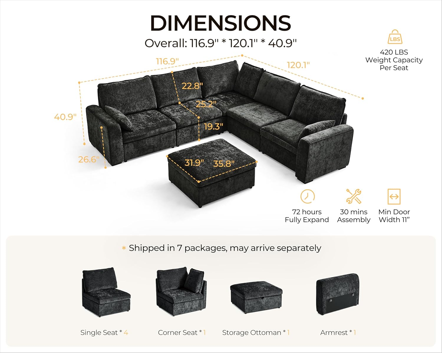 - ăMultiple Packages & Dedicated Supportă Your cloud modular sectional couch ships in 7 separate packages, which may arrive at different times. If you receive only some boxes, donât worryâmore are on the way! Need additional tracking details or assistance? Weâre happy to helpâjust reach out! Our team is here to ensure you receive everything as expected and guarantee a smooth, hassle-free shopping experience with your complete satisfaction