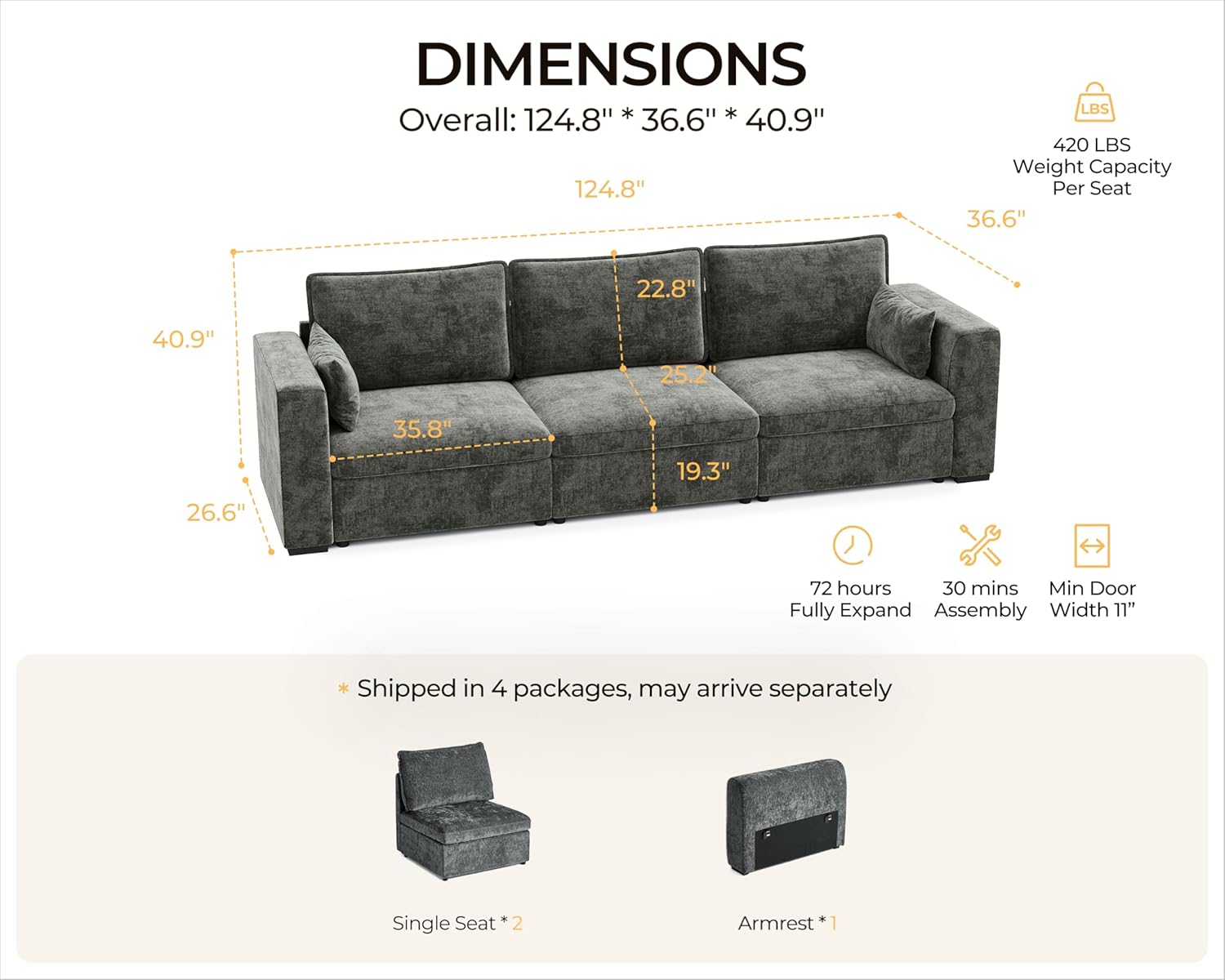 - ăMultiple Packages & Dedicated Supportă Your cloud modular sectional couch ships in 4 separate packages, which may arrive at different times. If you receive only some boxes, donât worryâmore are on the way! Need additional tracking details or assistance? Weâre happy to helpâjust reach out! Our team is here to ensure you receive everything as expected and guarantee a smooth, hassle-free shopping experience with your complete satisfaction