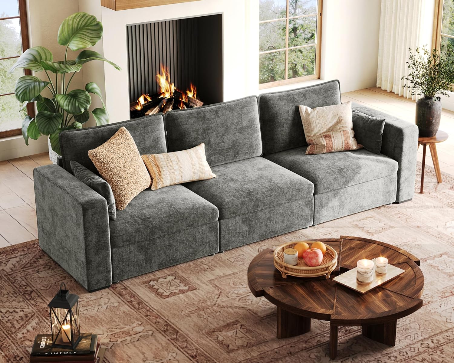 Oversized Modular Sofa Comfy Cloud Couch with Storage, Extra Deep Plush Sectional Sofa Set for Living Room, Covers Washable, Chenille, Olar (Grey, 3-Seater, Basic Shape)