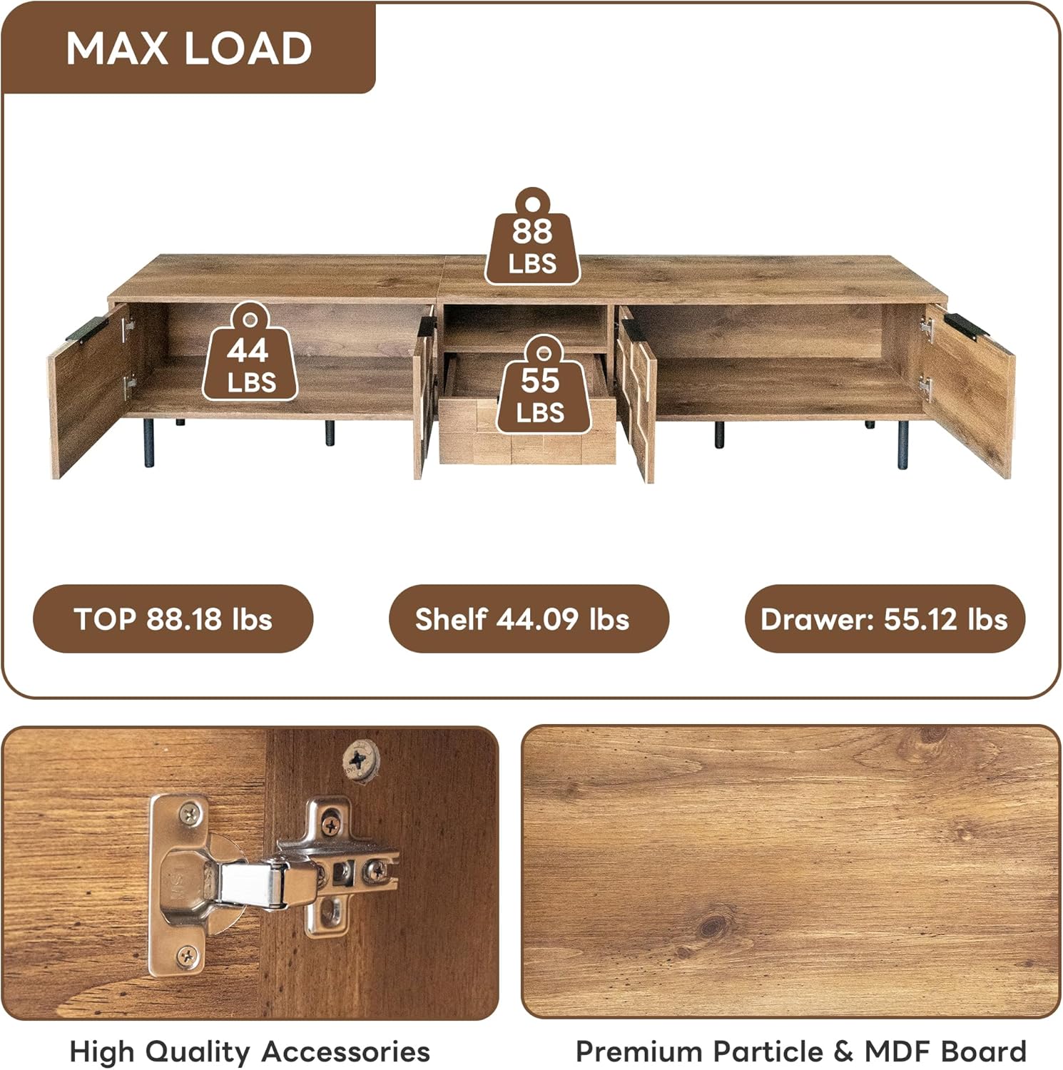 - Generous Storage Capacity – Designed with multiple enclosed cabinets, smooth-sliding drawers, and open shelves, this media console offers ample room to store your cable box, game consoles, media players, remotes, and décor items.