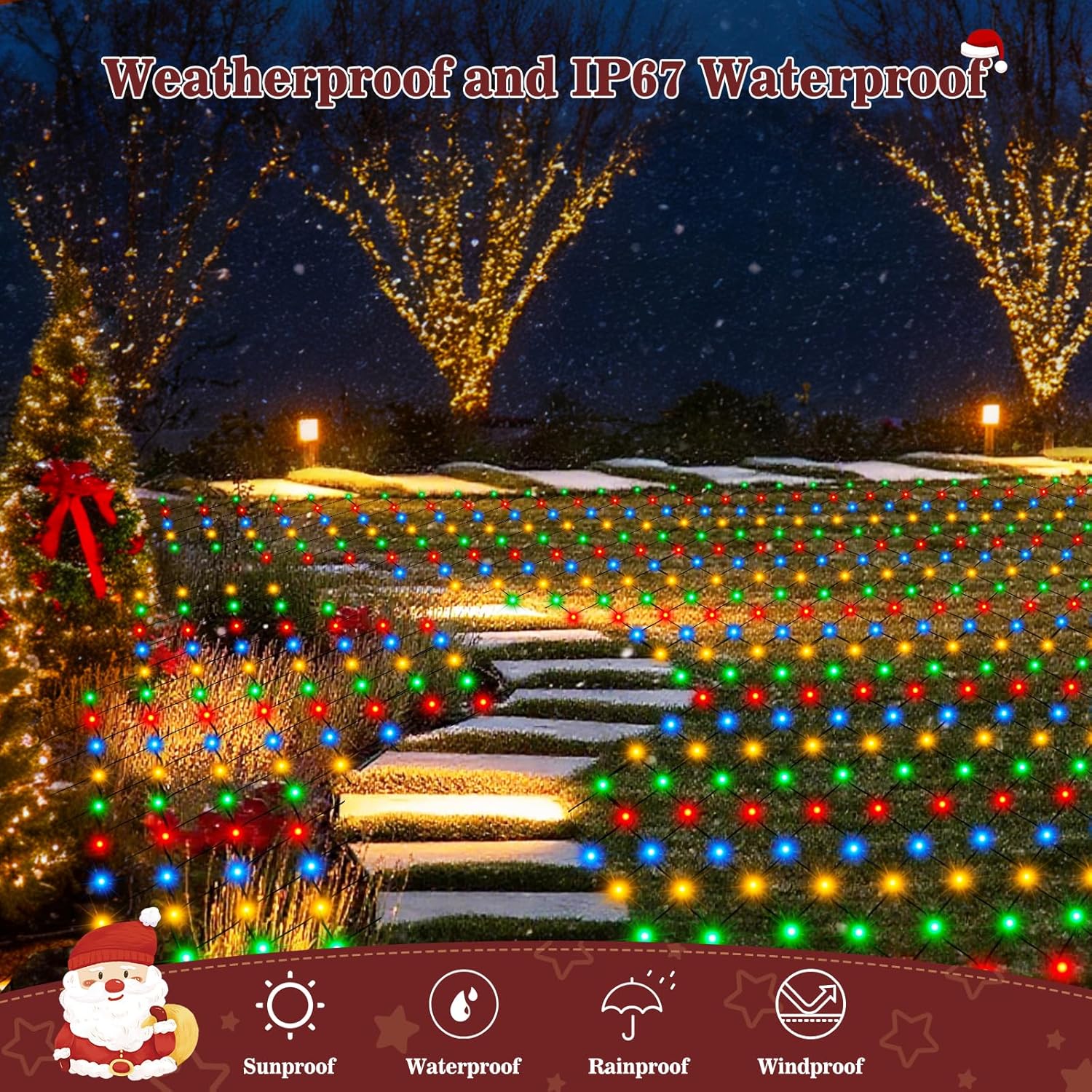 - ăIP67 Waterproof & All-Weather DurabilityăNewly IP67 waterproof Christmas net lights withstand heavy rain, snow, and winds. 2025 mesh lights housing feature waterproof construction, designed for year-round use in all weather conditions to ensure reliable and durable outdoor performance(Please be attention: the plug is not waterproof, please keep the plug away from water)