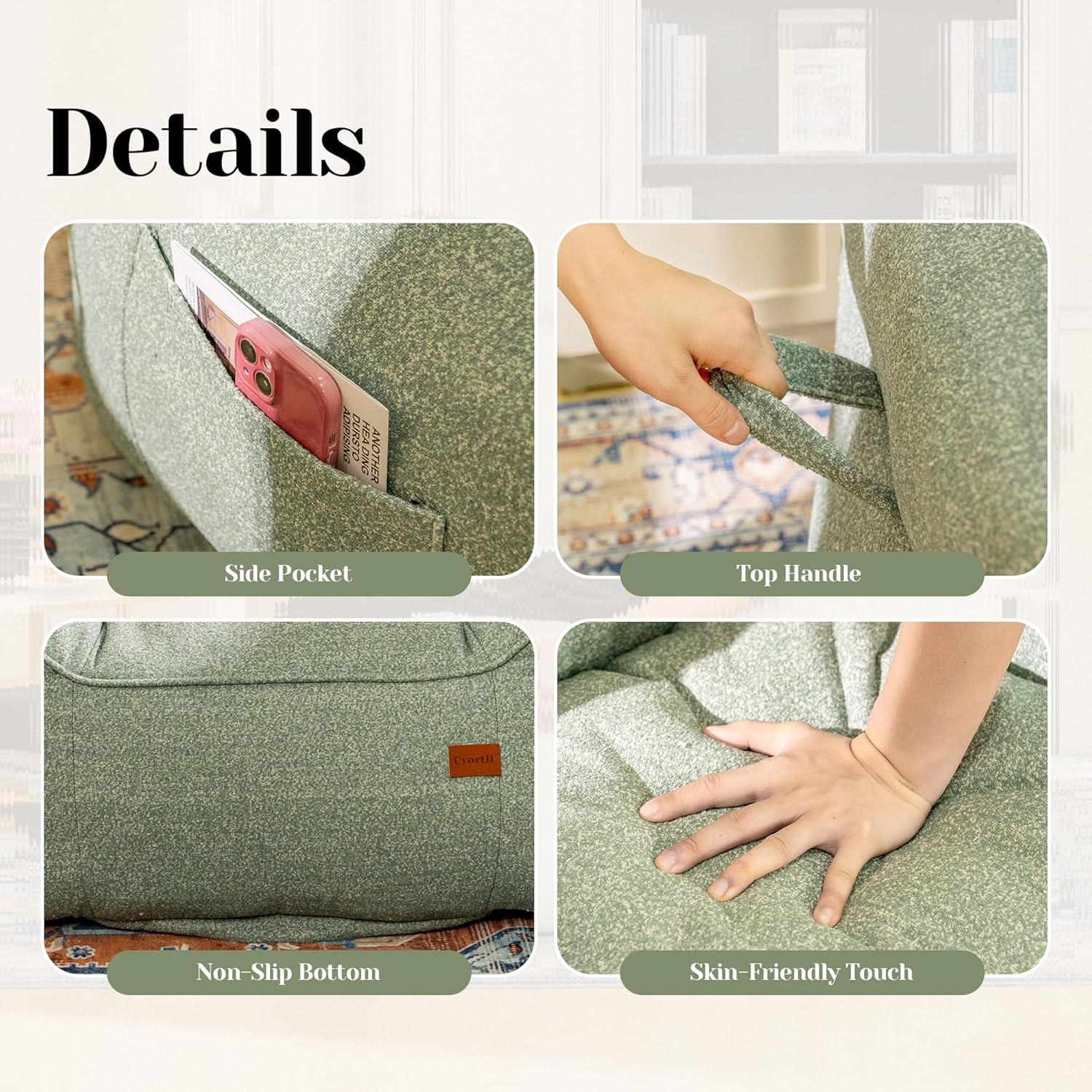 - Ergonomic Design: The adult bean bag chair stuffed high quality, high-density and high resilience sponge foam, designed with ergonomic backrest and two large armrests, which make sitting or lying more supportive. The cozy bean bag chair sofa measures 37" x 34.25" x 29.52", which is spacious enough to fit any body type, and great for adults, teenagers.