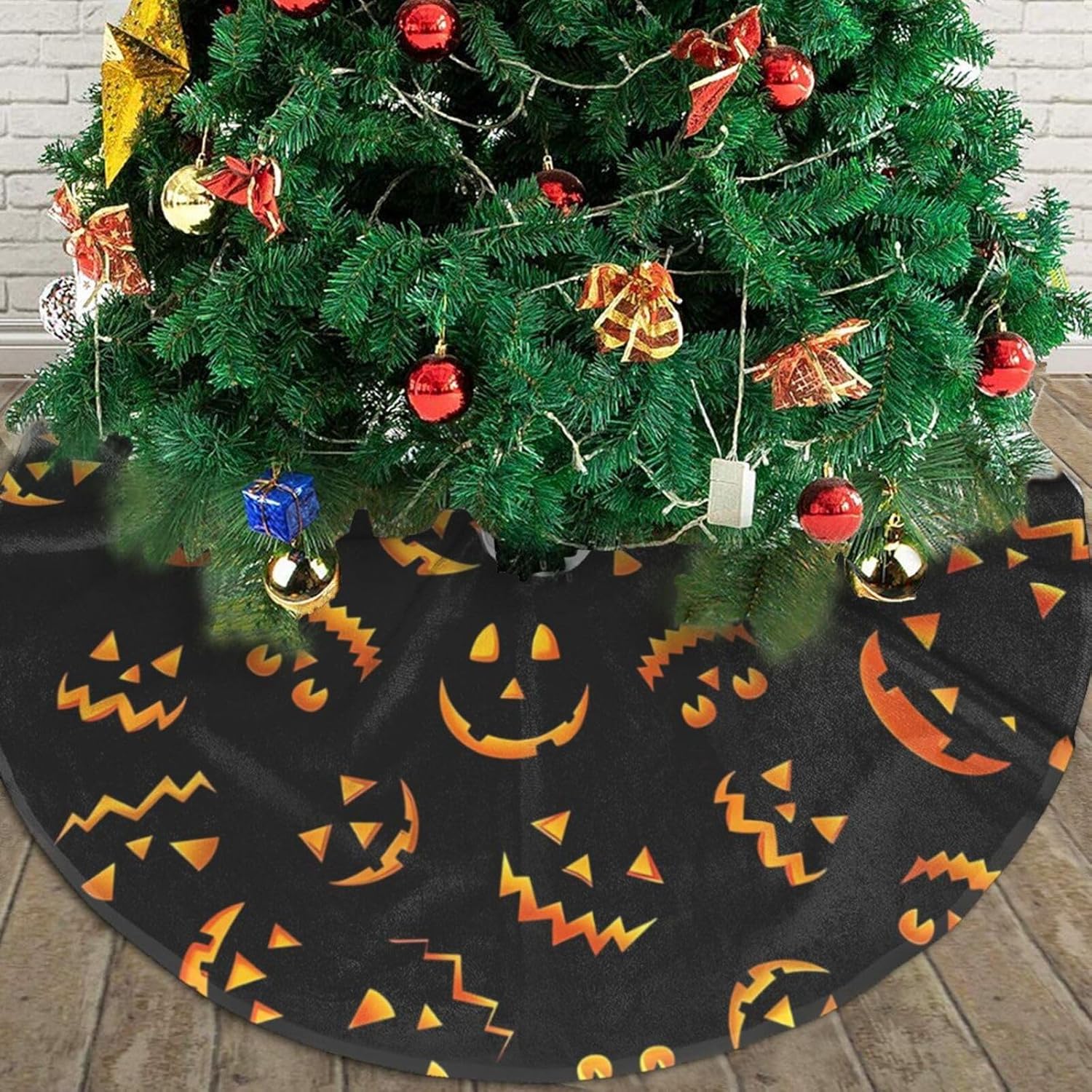 Christmas Tree Skirt,Jack O Lantern Pumpkin Smiles Xmas Tree Skirt Rustic Farmhouse Tree Skirt for Christmas Decor Xmas Holiday Home Party Decorations36
