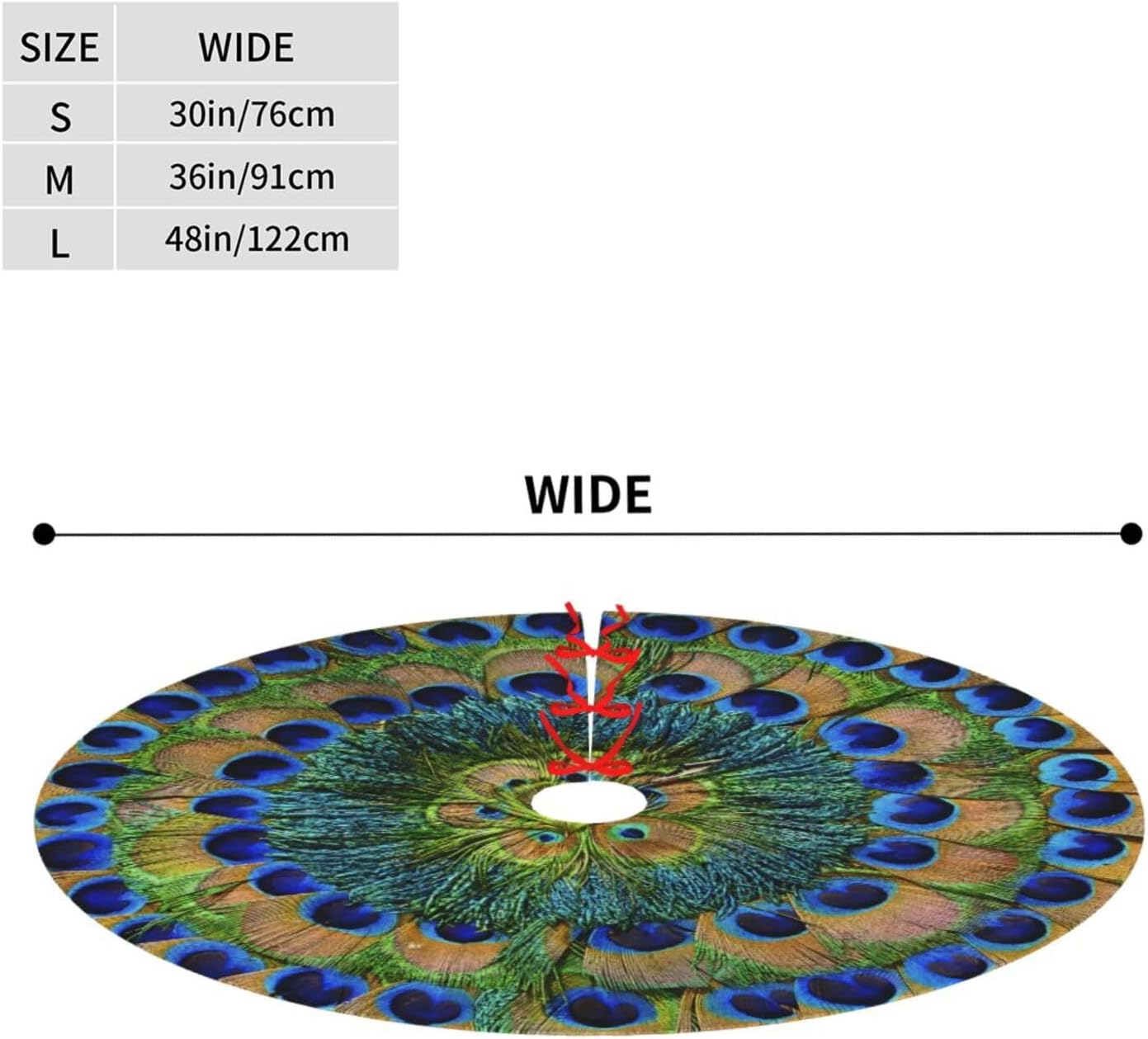 Christmas Tree Skirt,Peacock Feathers Circle Xmas Tree Skirt Rustic Farmhouse Tree Skirt for Christmas Decor Xmas Holiday Home Party Decorations30