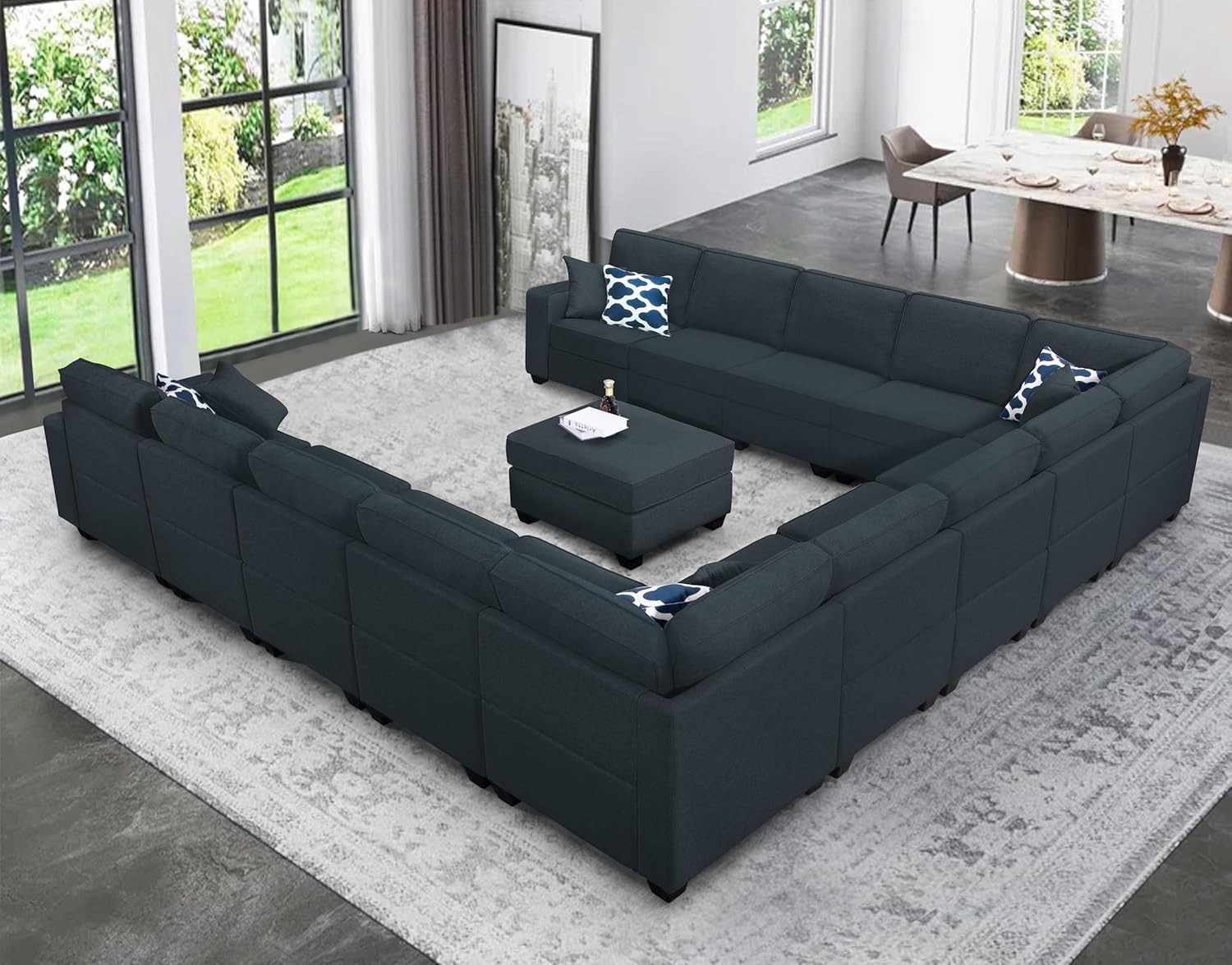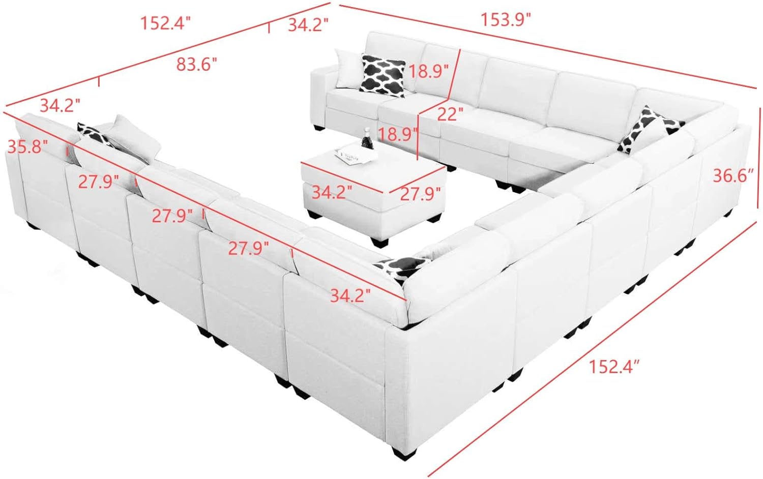 - ăErgonomic DesignăThe backrest of the couches for living room perfectly fits the human body curve, the armrests are wide and at the right height, and the living room sofa as a whole is ergonomically designed to give you comfortable support. The modular sectional sofa is paired with multiple multi-functional small pillows, allowing you to relax anytime, anywhere. The oversized couch has a weight capacity of up to 660 pounds to give you stable support.