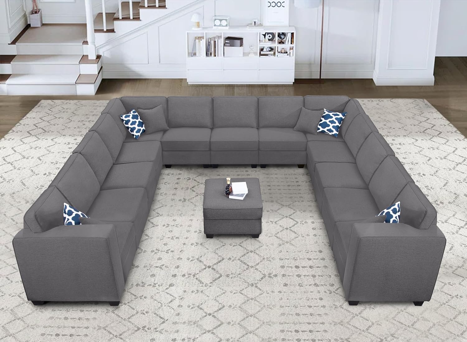- ăFlexible CombinationăThe u shaped couch can rearrange the seats, you can adjust it as you like to create various shapes and layouts, whether it's combined into an L shaped sofa or a U shaped sofa, this sofa couch can fit your space perfectly. This flexibility not only brings more choices, but also saves your budget, by adding additional modules, you can easily expand the capacity and functionality of the sofa without having to replace the modular sofa completely.