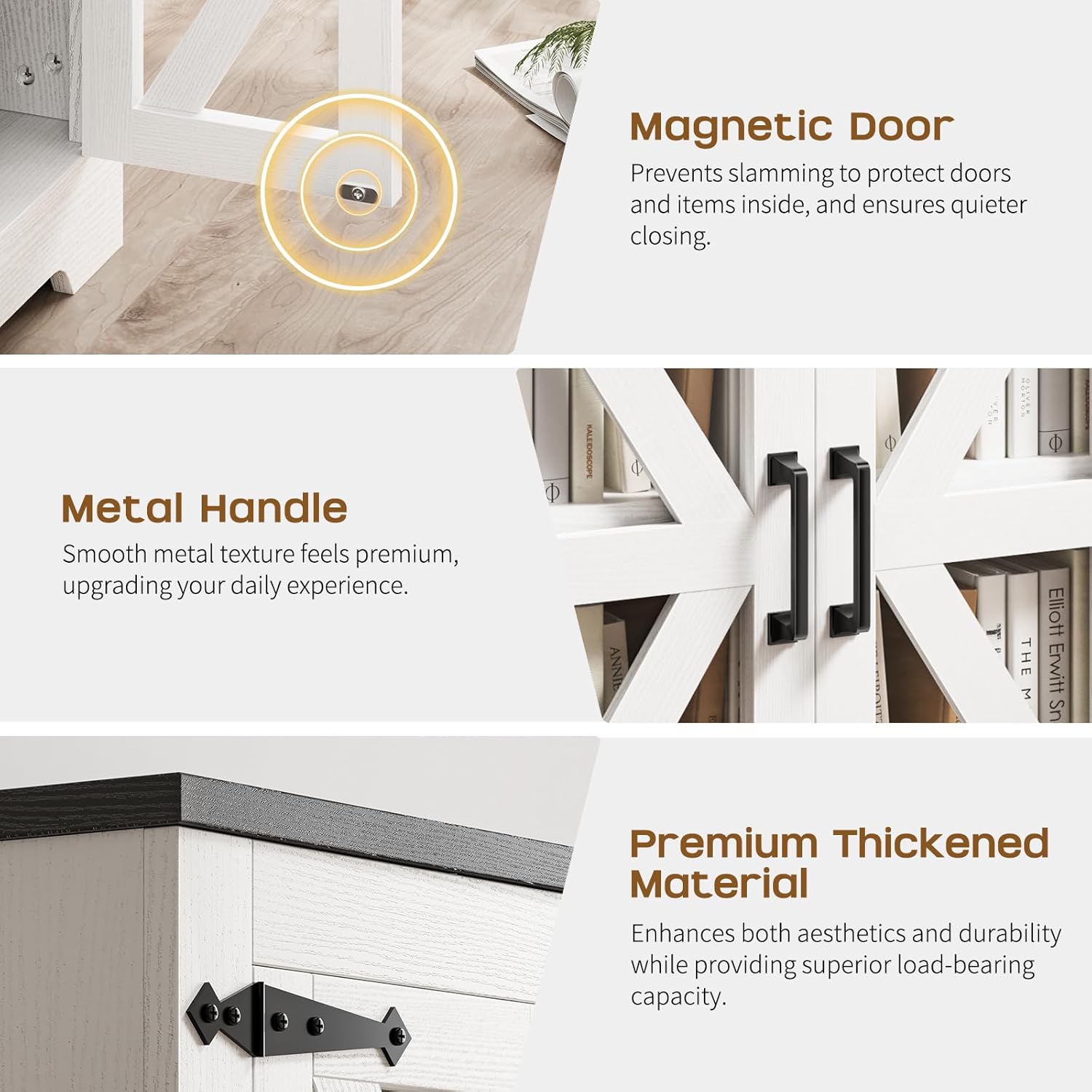 Farmhouse Side Table with Storage Cabinet, End Table with Adjustable Shelf, Large Night Stand, Wood Nightstand with Charging Station, 24" End Tables Living Room, Rustic Bed Side Tables Bedroom