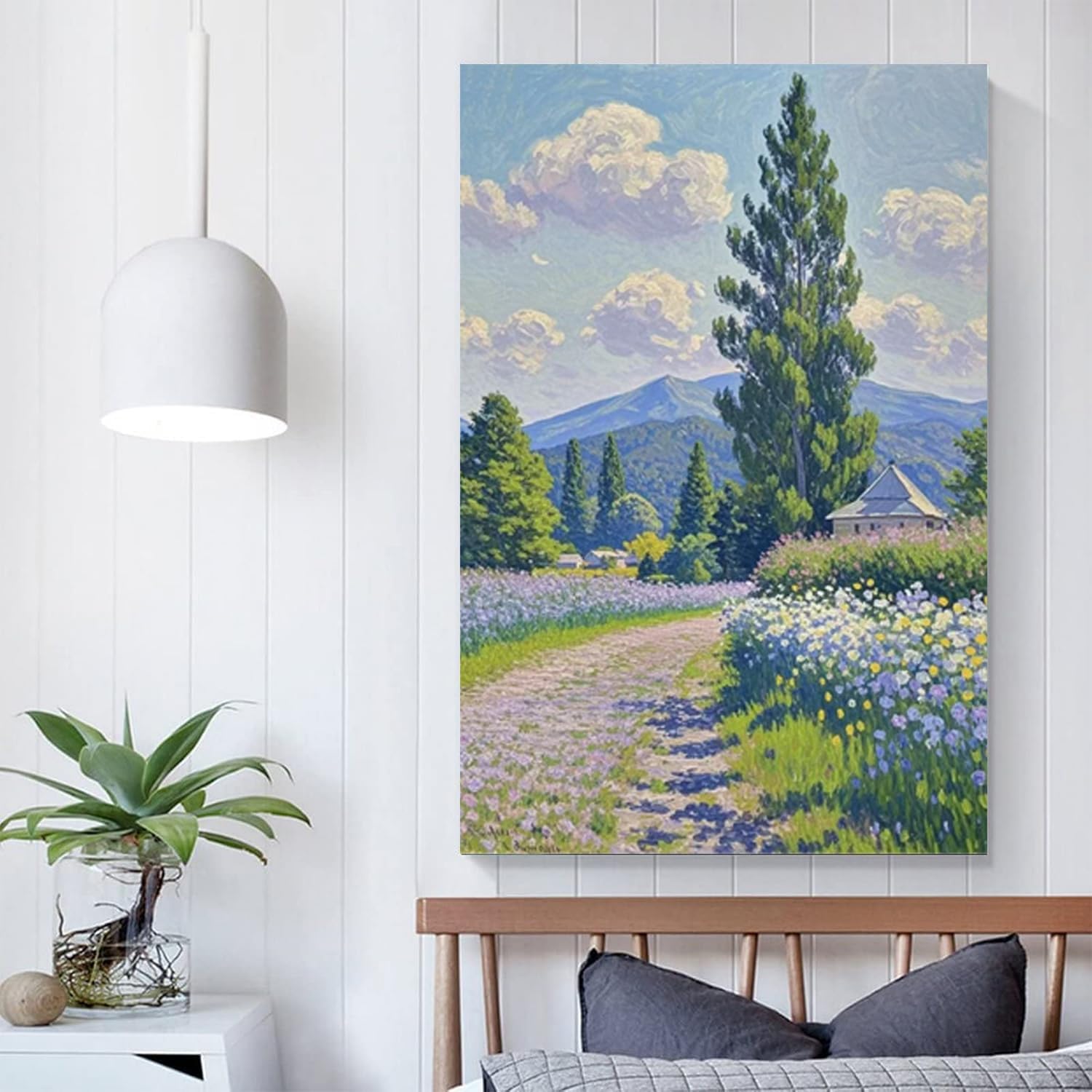 Countryside wildflowers landscape canvas poster natural plant flower artwork retro pastoral flower path suitable for farmhouse decoration