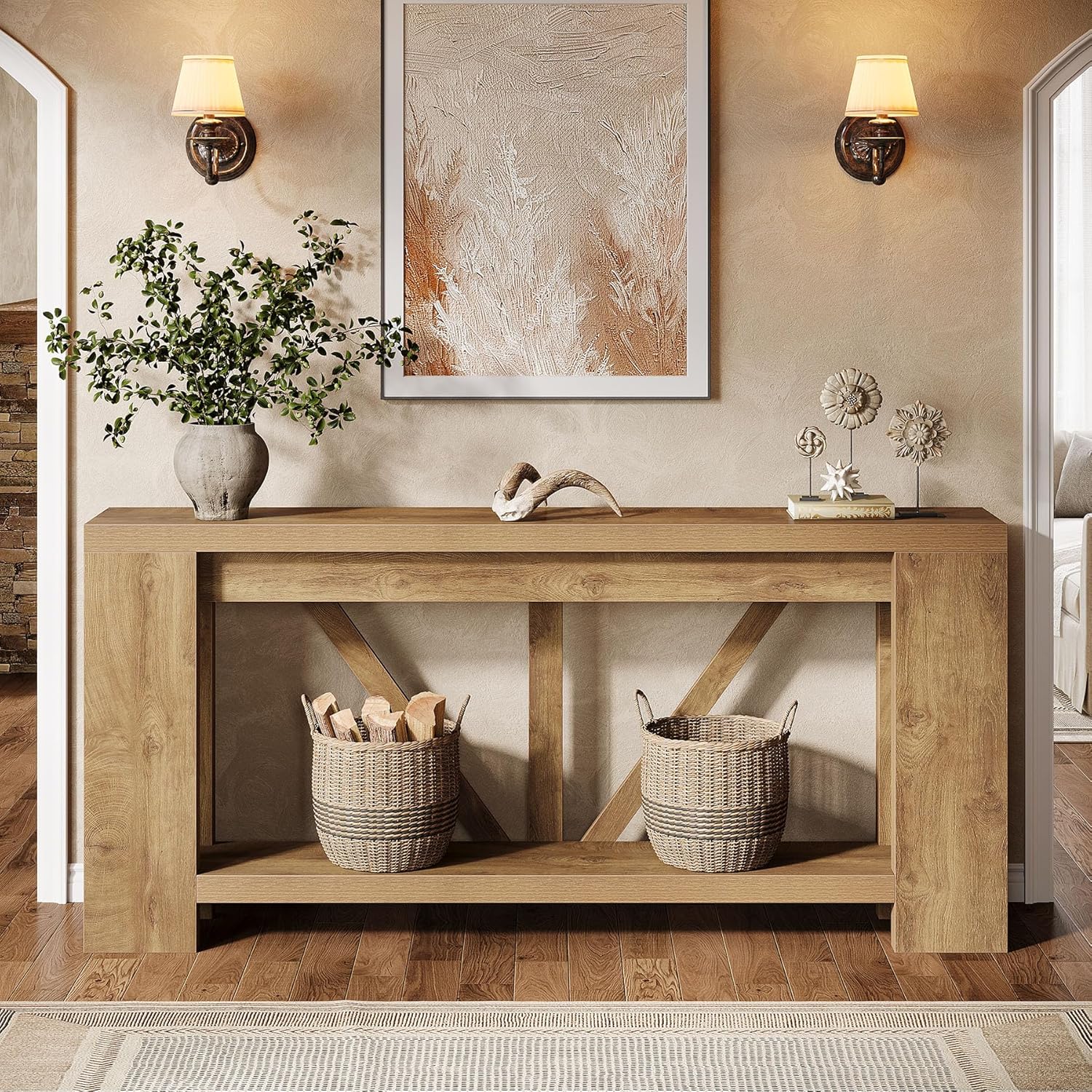 Tribesigns 70.9" Extra Long Entry Table, Farmhouse Wood Console Table with Storage, Modern Accent Sofa Table Behind Couch Foyer Tables for Entryway, Living Room, Entrance, Light Brown