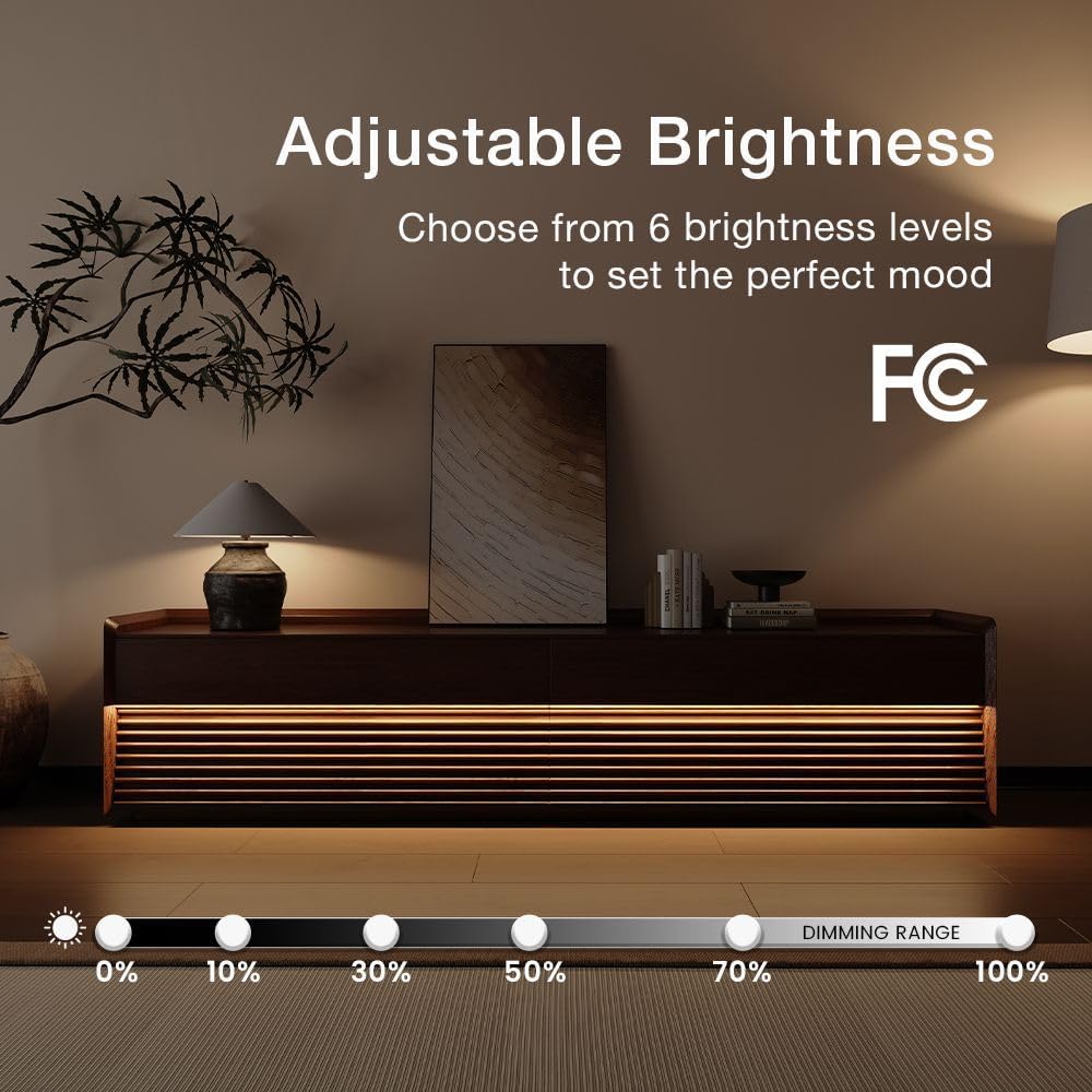 - Integrated LED Lighting: Enjoy the convenience of built-in LED lighting. The warm, 6-level adjustable lighting with remote control enhances the visual appeal of your TV console and makes your displayed items stand out