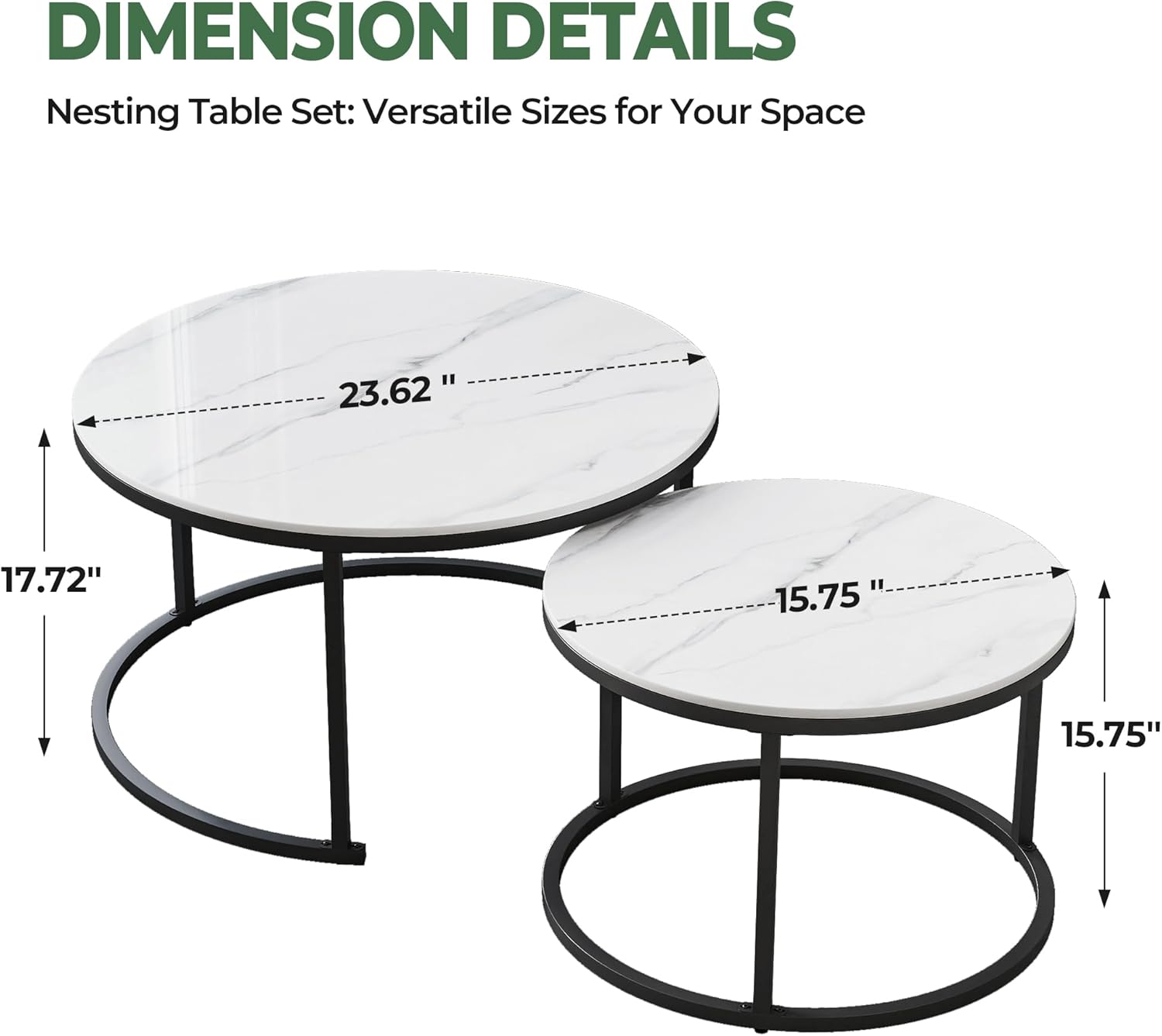 Modern White Coffee Table Set of 2 - Sintered Stone Top & Sturdy Metal Base, fo Living Room Bedroom Apartment